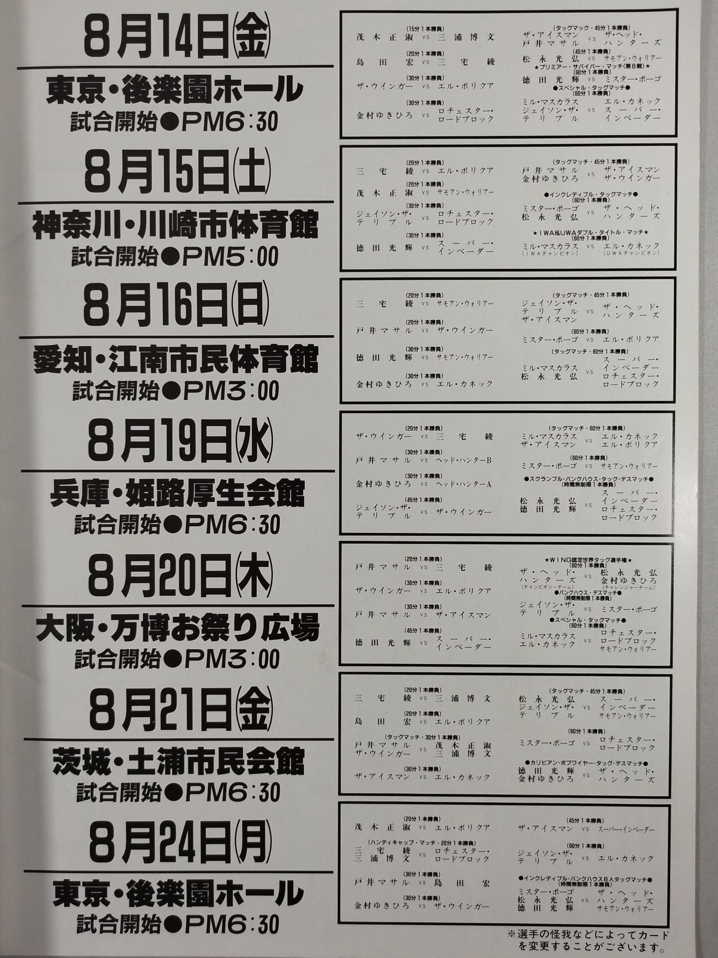 There are notations for 7 tournaments / Cover: Mil Mascaras