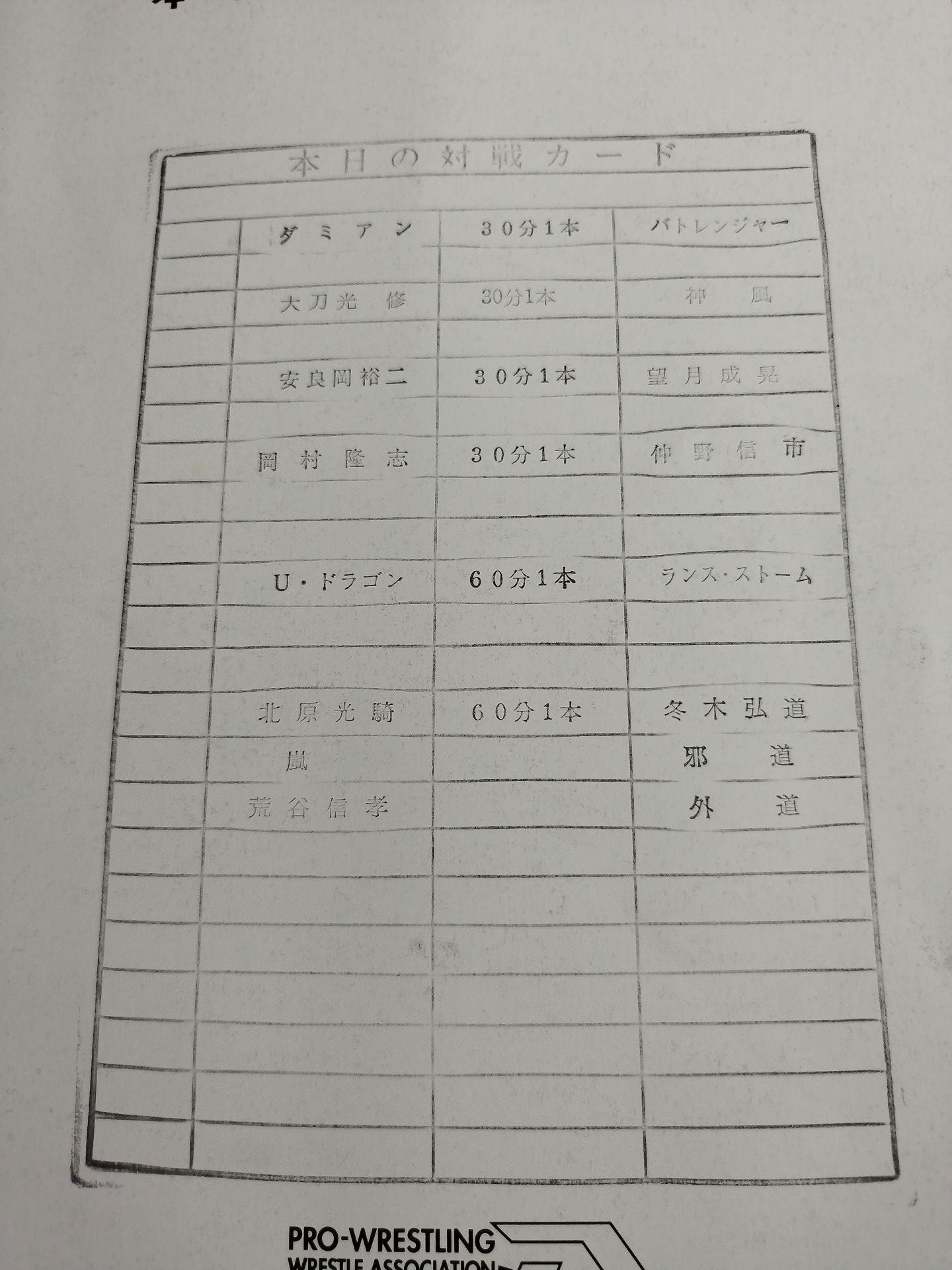 1996 Venue: Korakuen Hall / stamped with list of matches : [WAR Certified World 6-Man Tag Team Fighters Rights Match] Koki Kitahara & Arashi & Nobutaka Aratani vs Kodo Fuyuki & Jado& GEDO / [WAR Certified International Junior Heavyweight Fighters Rights Match] Ultimo Dragon vs Lance Storm New Year SUPER REVOLUTION '96