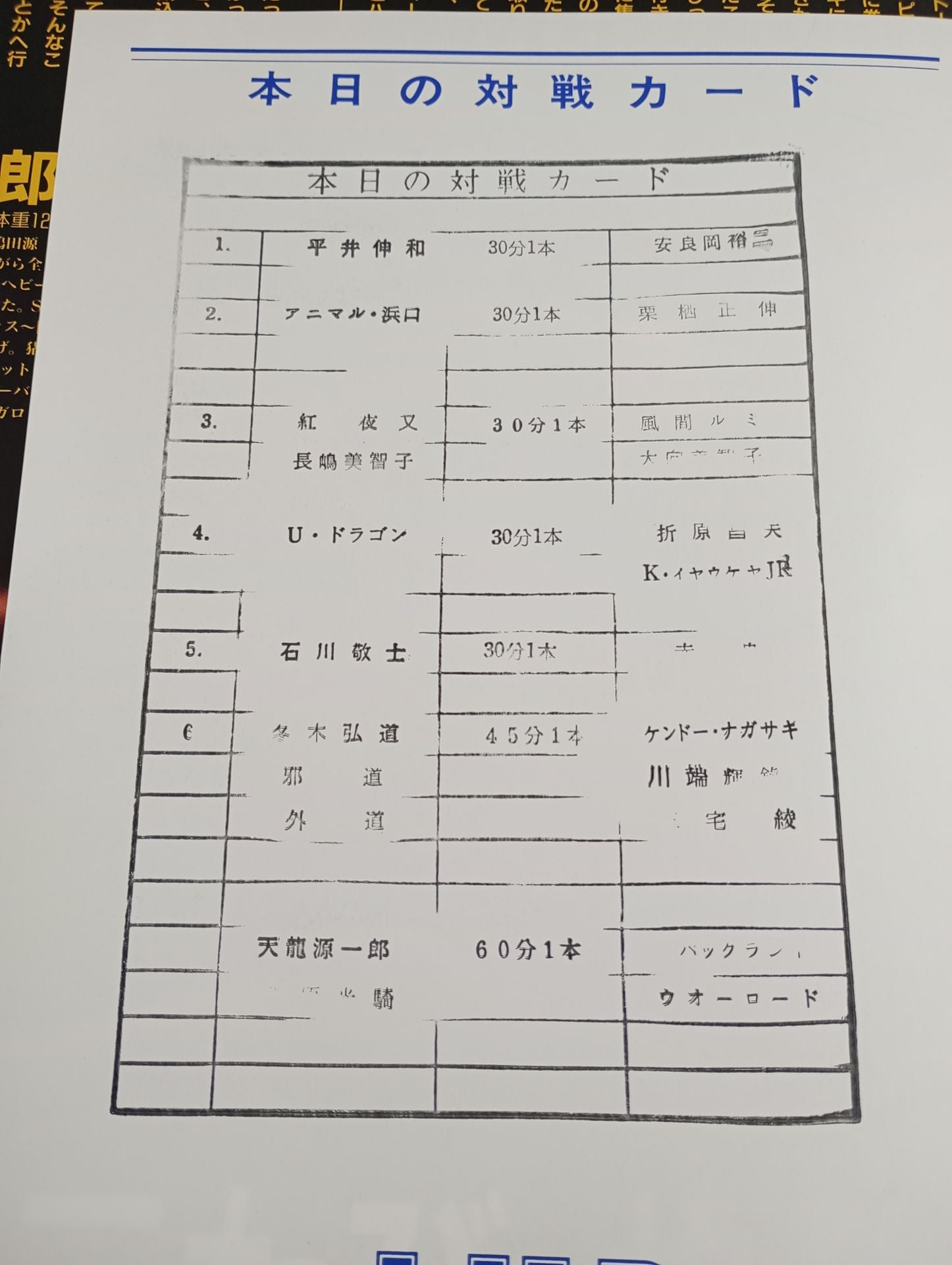 1994 Venue: Toyogai Hotel East Hall 21, Tokyo (Opening Round) / stamped with list of matches : TenryuGenichiro & Koki Kitahara vs Bob Backlund & Warlord