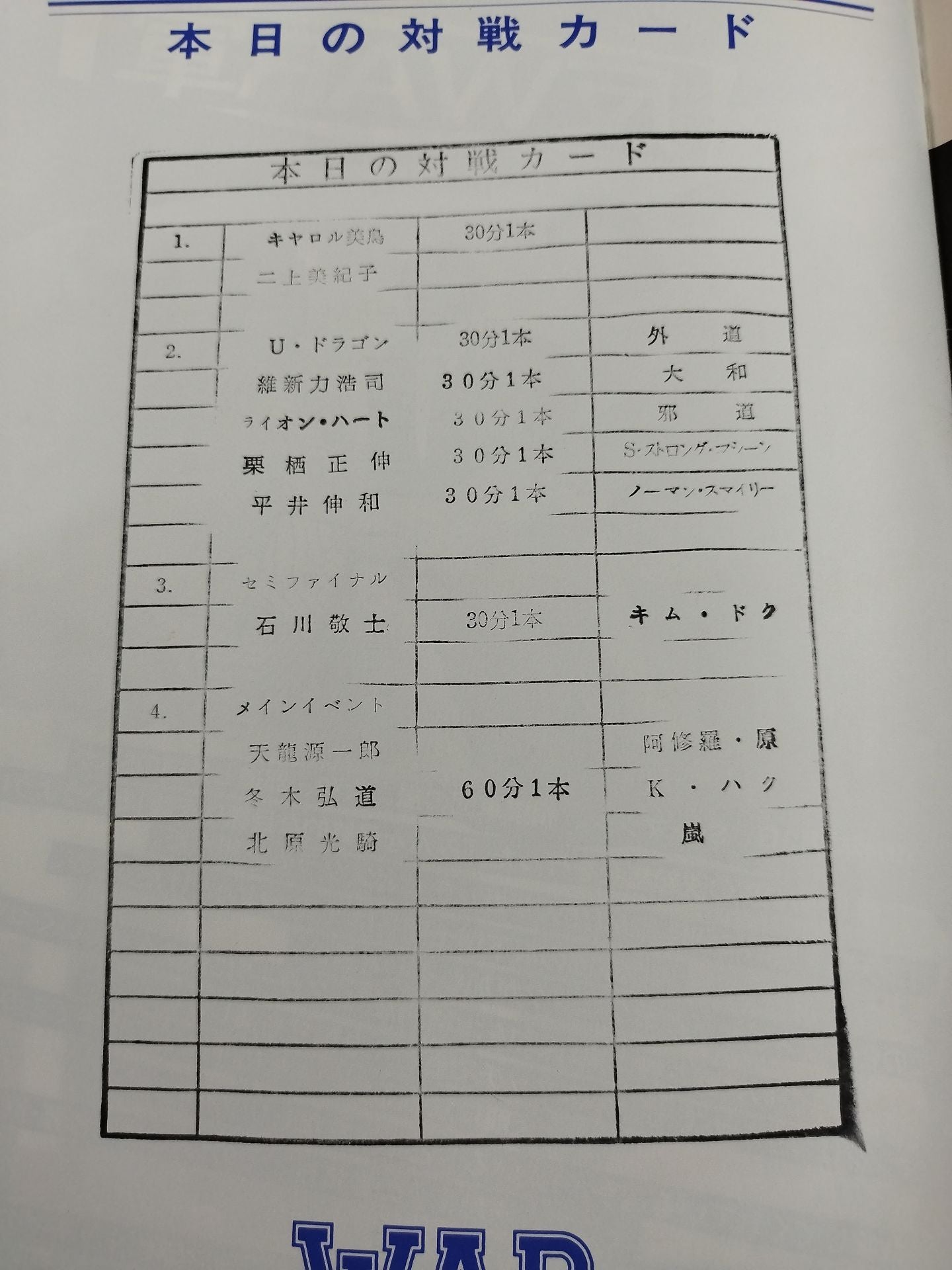 1994 stamped with list of matches :Tenryu Genichiro & amp; Kodo Fuyuki & Koki Kitahara vs Ashura Hara & King Haku & Arashi