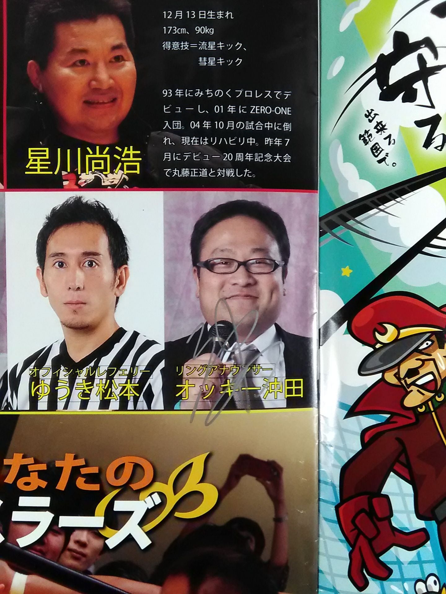 2014 Masato Tanaka , Ikuto Hidaka , HUB, Tigers Mask, Billyken Kid , Ocky Okita (Linguana) More than 5 people hand signed autograph ! / without the list of the matiches on the separate sheet