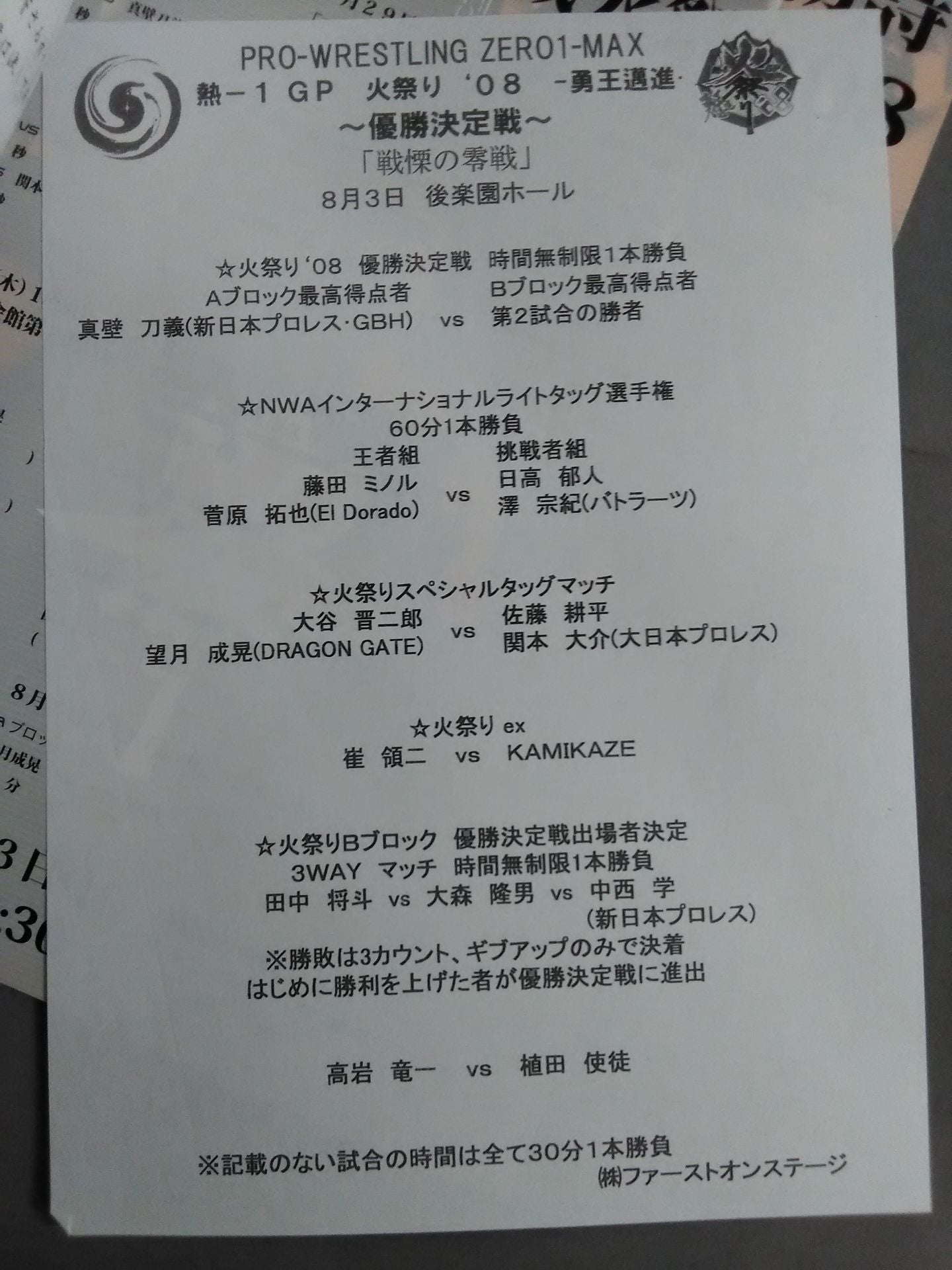 2008 Venue: Korakuen Hall / List of the matches on the separate sheet : Togi Makabevs Winner of the second match (Masato Tanaka ) / [NWA International Light Tag Team Fighters Rights Match] Minoru Fujita & Takuya Sugawara vs Ikuto Hidaka & Munenori Sawa