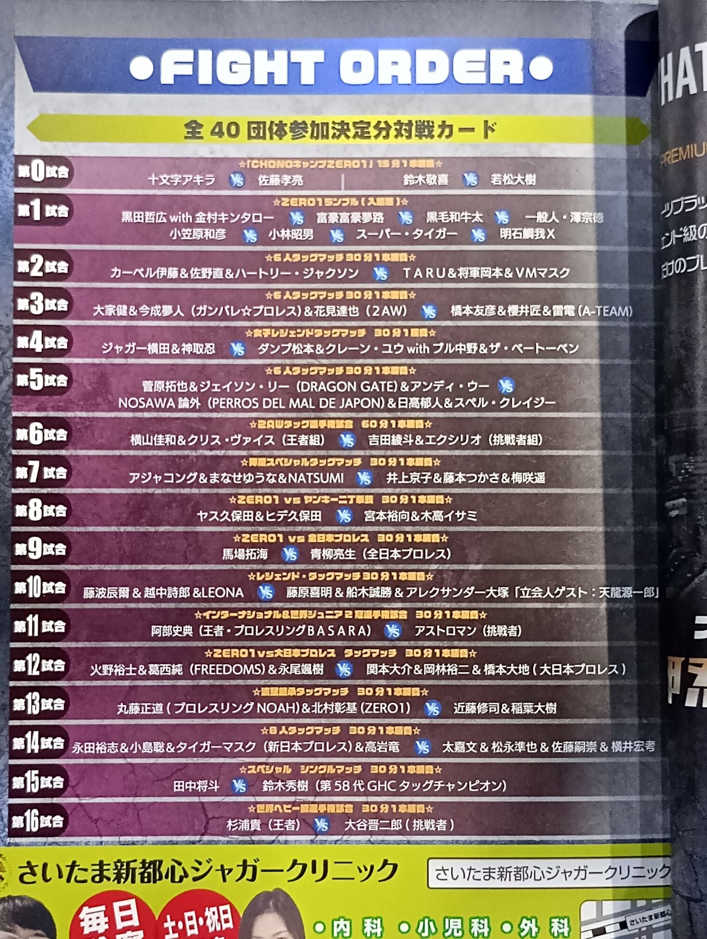 2022 Venue: Ryogoku / List of the matches is printed : 【World HeavyweightFighters right match] Takashi Sugiura vs Shinjiro Otani * After the match, Otani was evacuated Oshinin PREMIUM