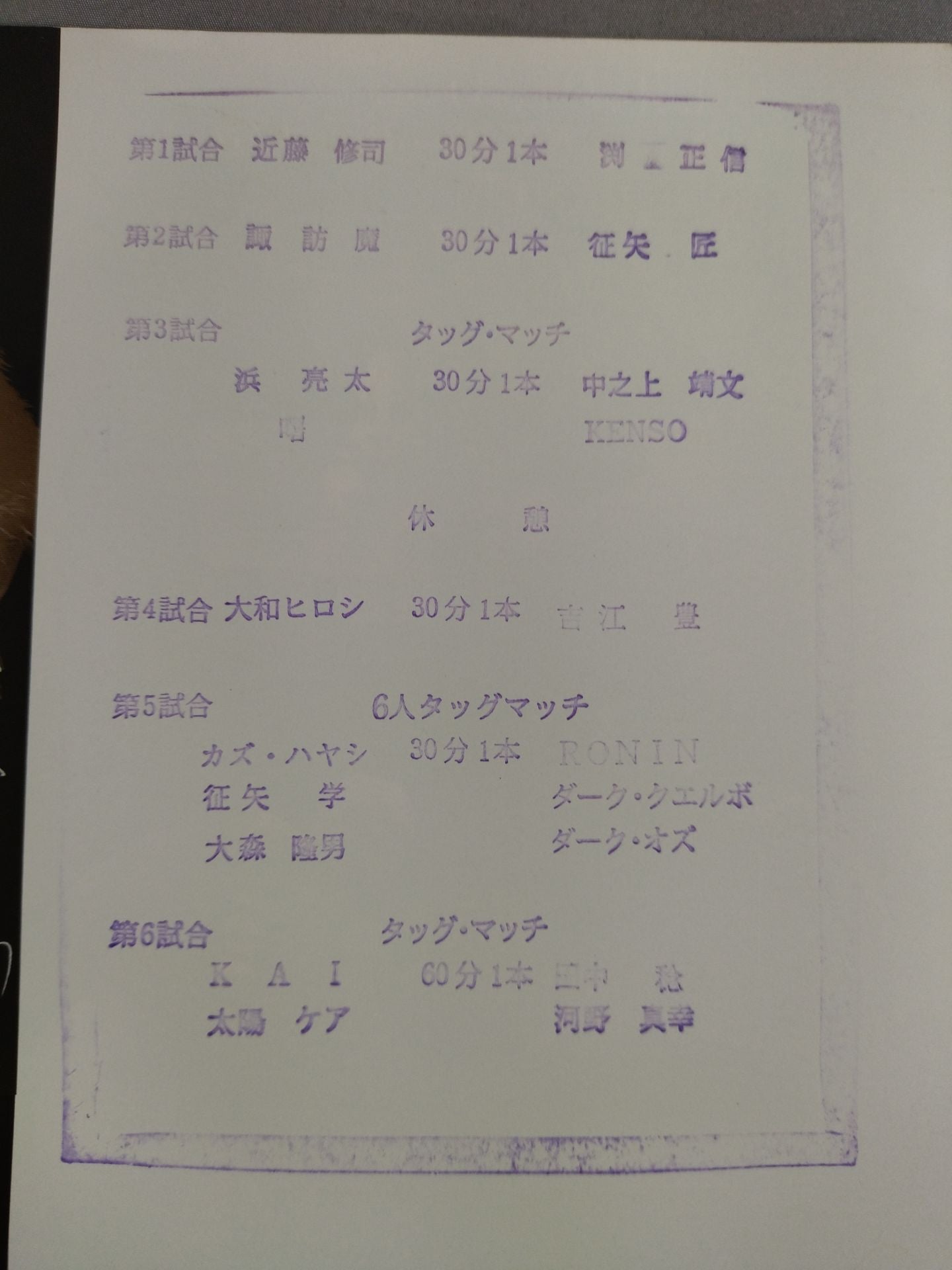 2012 Venue: Aomori Sangyo Kaikan / stamped with list of matches : Kohei Kono& Minoru Tanaka vs Taiyo Kea & KAI