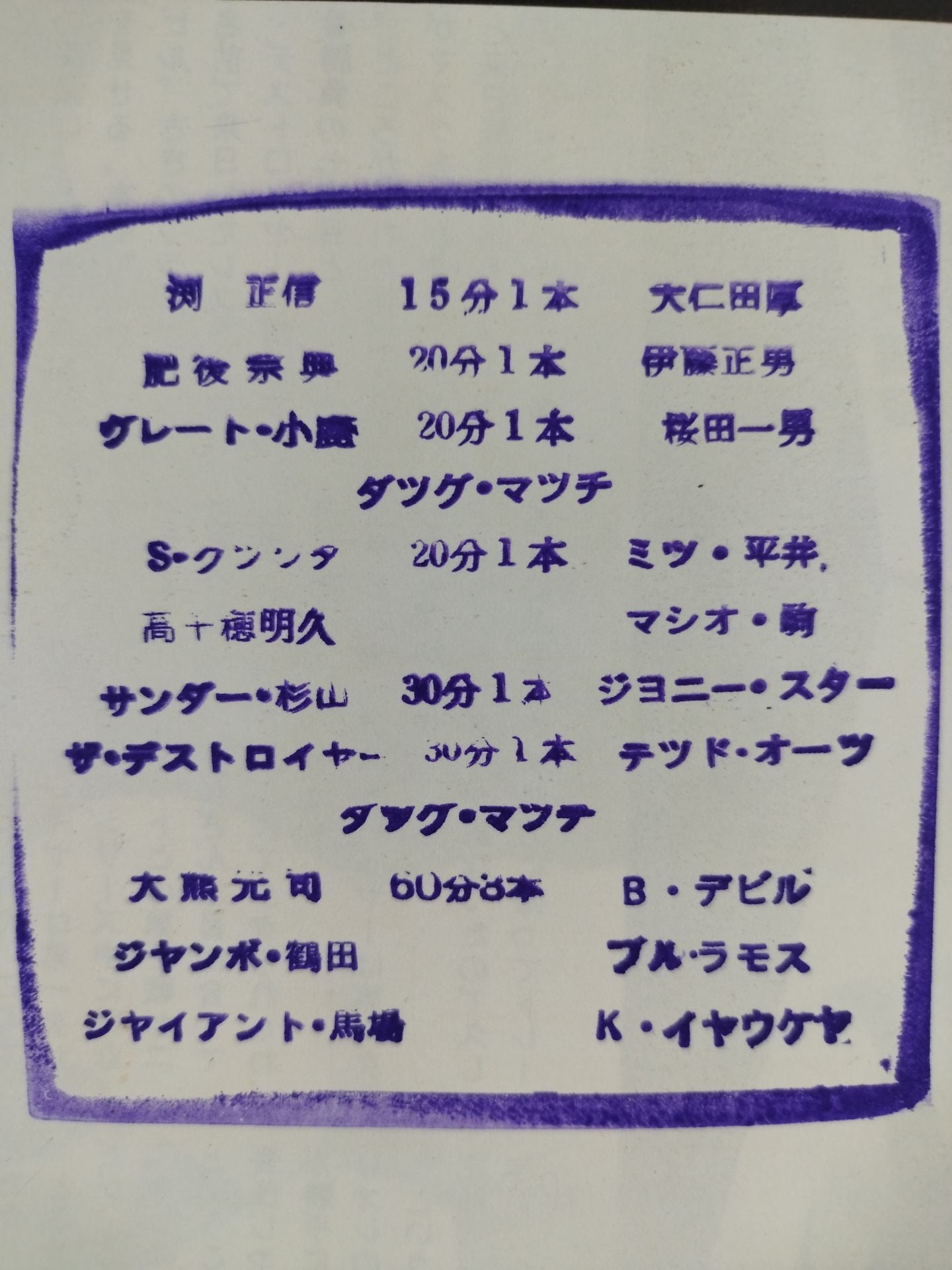 1975 Venue: Korakuen Hall / stamped with list of matches :Giant Baba &Jumbo Tsuruta & amp; Motoshi Okuma vs King Iaukea & Bull Ramos & Black Devil / The Destroyer vs Ted Oates