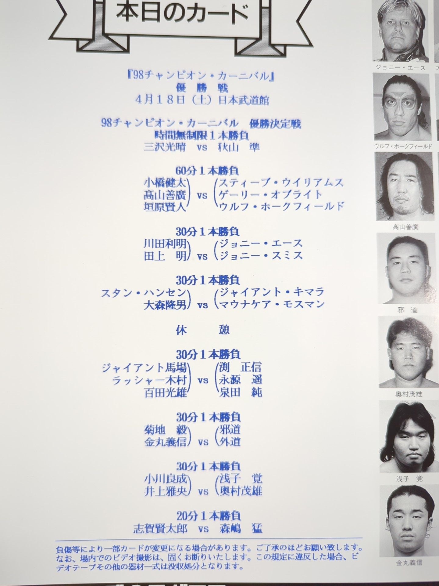 1998 Venue: Japan Budokan (Final Match) / list of the matches is printed : [Championship Match] Mitsuharu Misawa vs Jun Akiyama