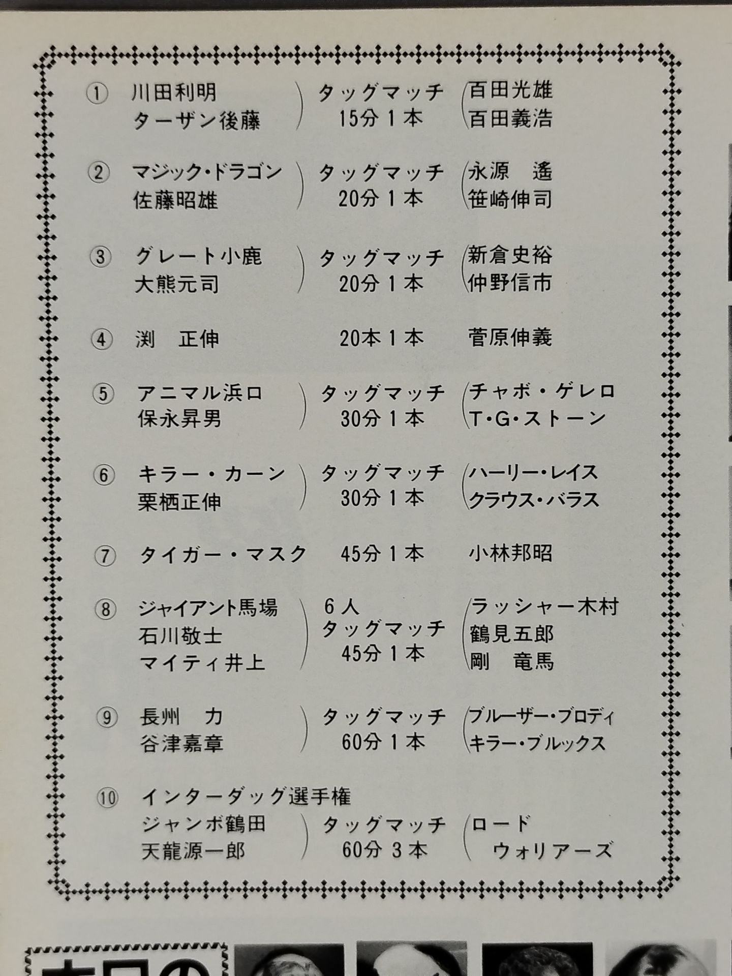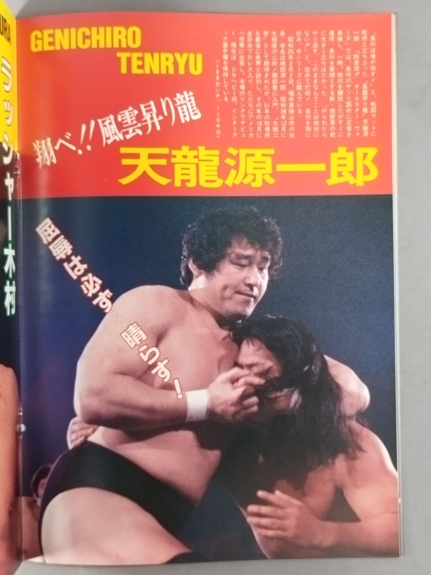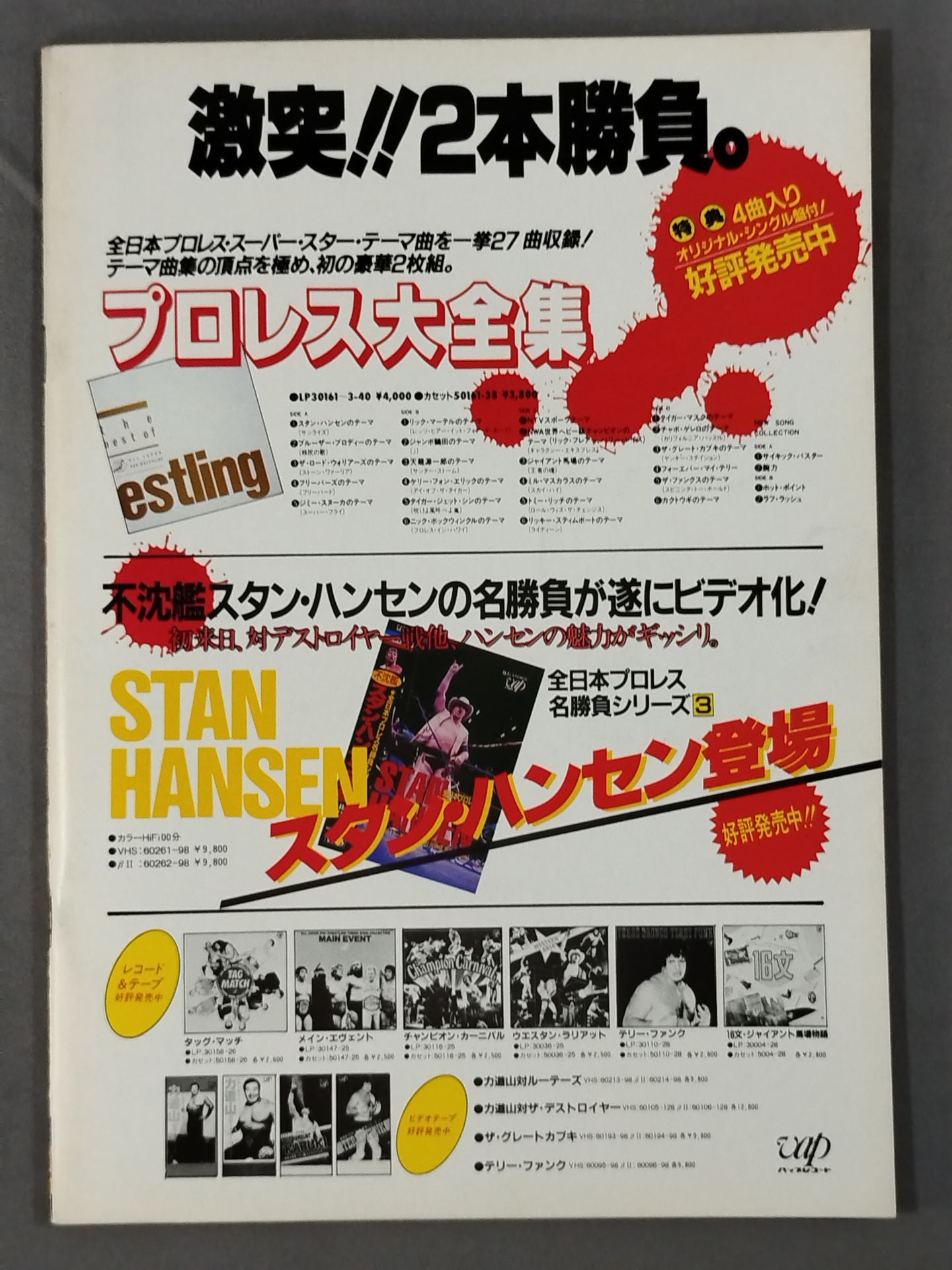 Venue: Ryogoku / list of the matches is printed : [International Tag Team fighters Match] Jumbo Tsuruta &Tenryu Genichiro vs. The Road Warriors (Hawk & Animal) / Riki Choshu & Yoshiaki Yatsu vs Bruiser Brody & Killer Brooks