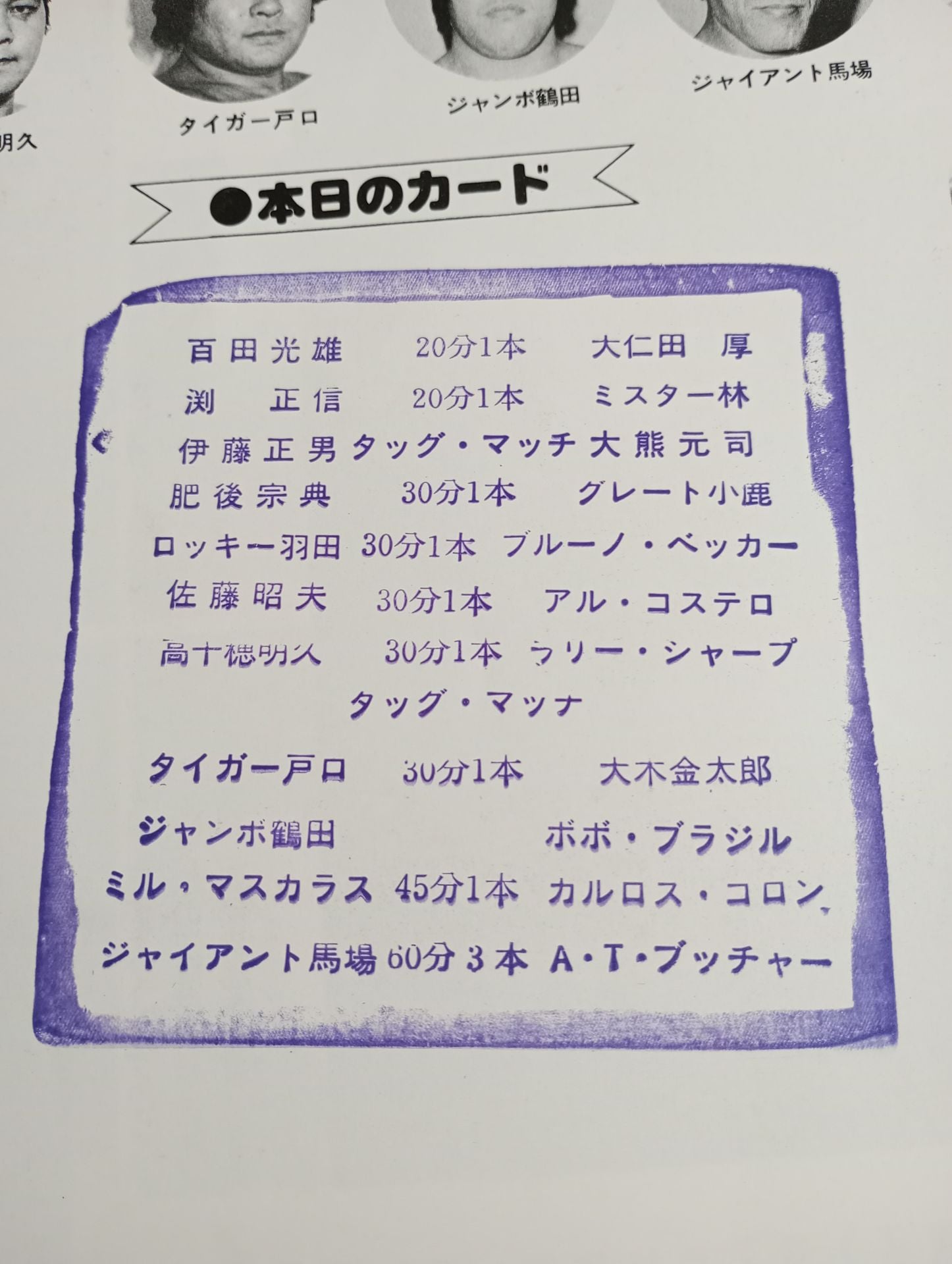1979 Venue: Osaka Prefectural Gymnasium / stamped with list of matches : [PWF HeavyweightFighters Match] Giant Baba vs Abdullah the Butcher / Mil Mascaras vs Carlos Colón