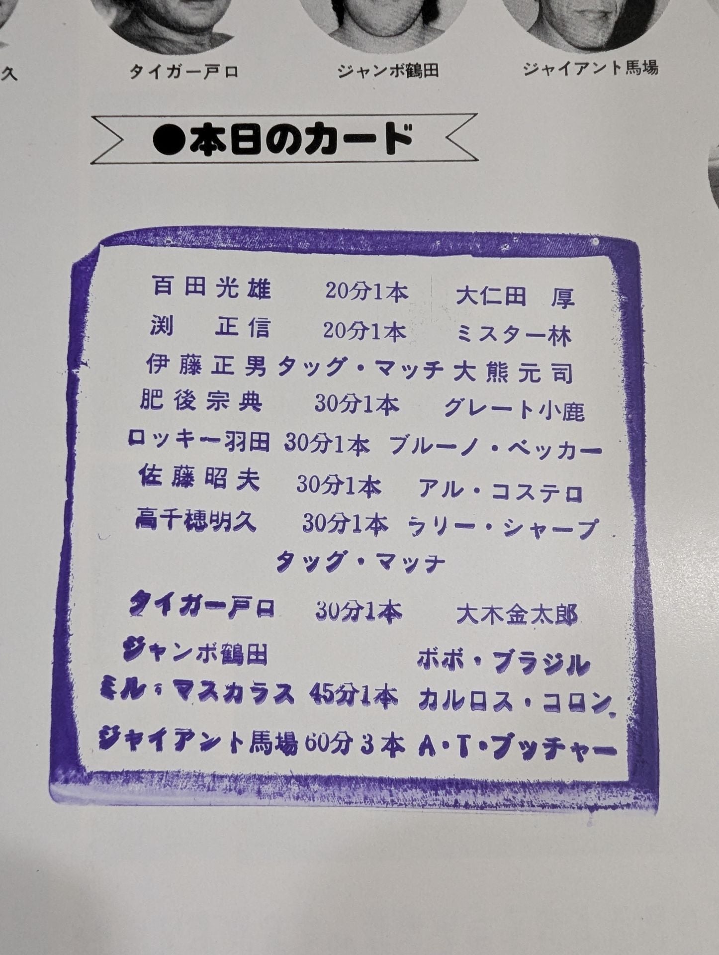 1979 Venue: Osaka Prefectural Gymnasium / stamped with list of matches : [PWF HeavyweightFighters Match] Giant Baba vs Abdullah the Butcher / Mil Mascaras vs Carlos Colón