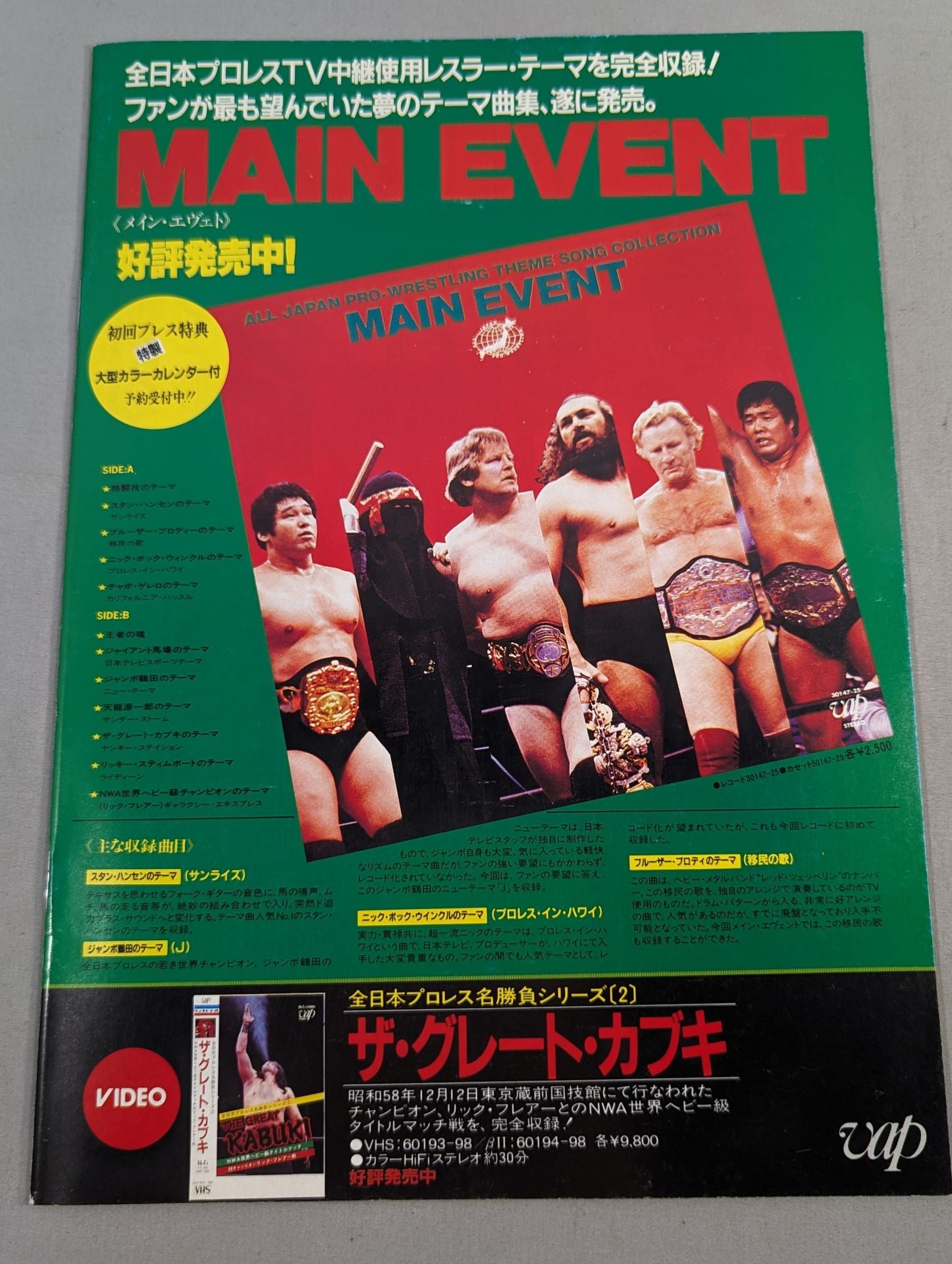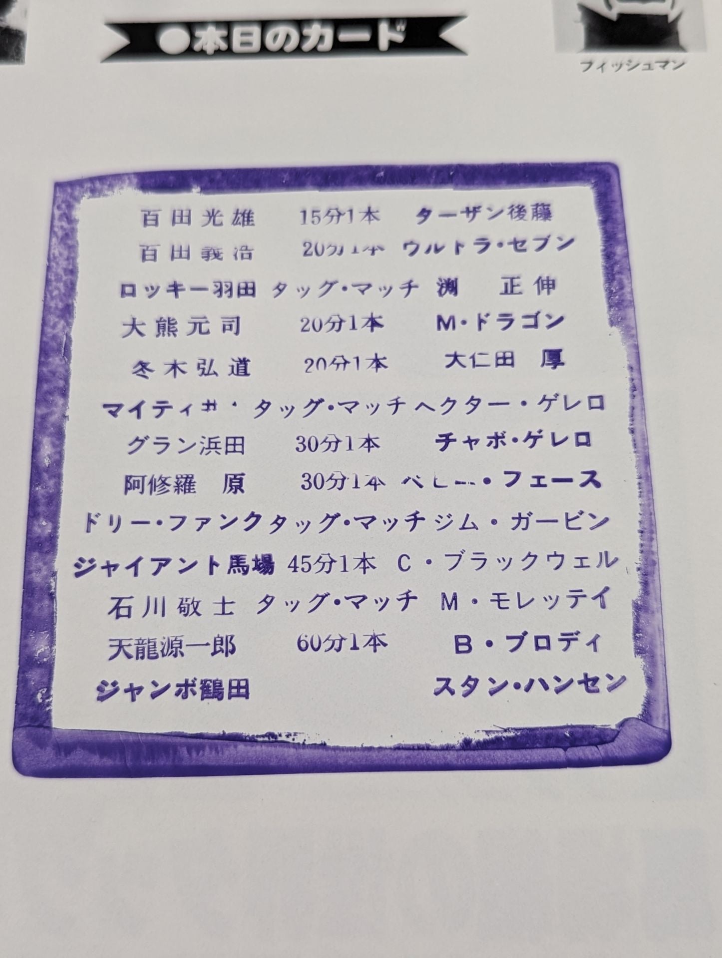 1984 Venue: Sendai City Leisure Center / stamped with list of matches : Jumbo Tsuruta & TenryuGenichiro & Keiji Ishikawa vs Stan Hansen & Bruza Brody & Moondoc Moretti