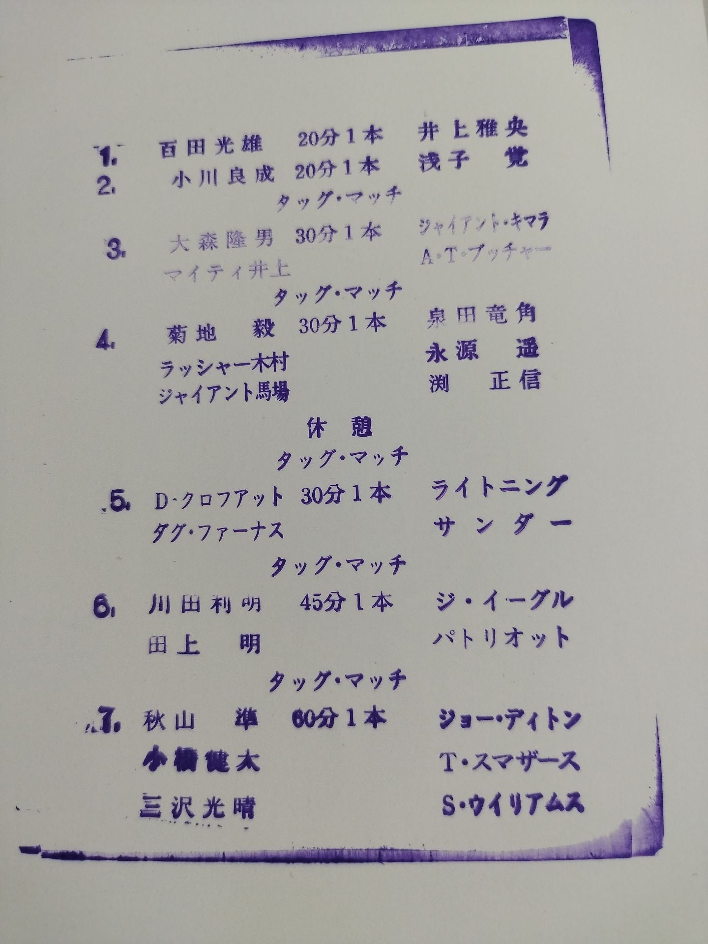 1993 Venue: Amenity Trial Tama 21, Tokyo / stamped with list of matches : Mitsuharu Misawa & Kenta Kobashi & Jun Akiyama vs Steve Williams & Tracy Smathers & Joe Deaton