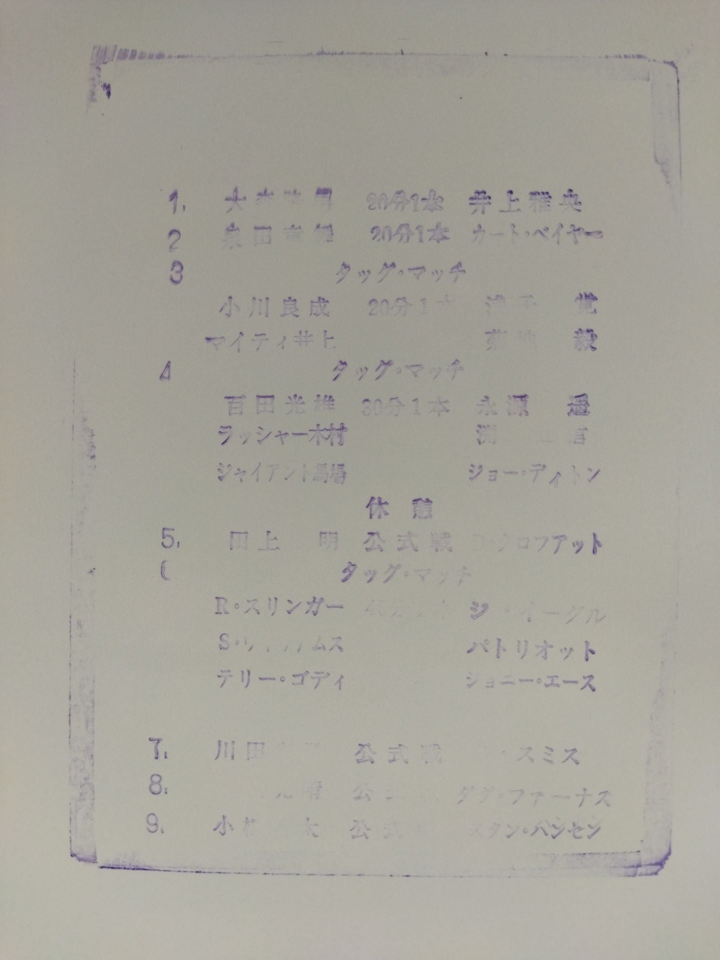 1993 Venue: Korakuen Hall / Stamped with list of matches : Kenta Kobashi vs Stan Hansen