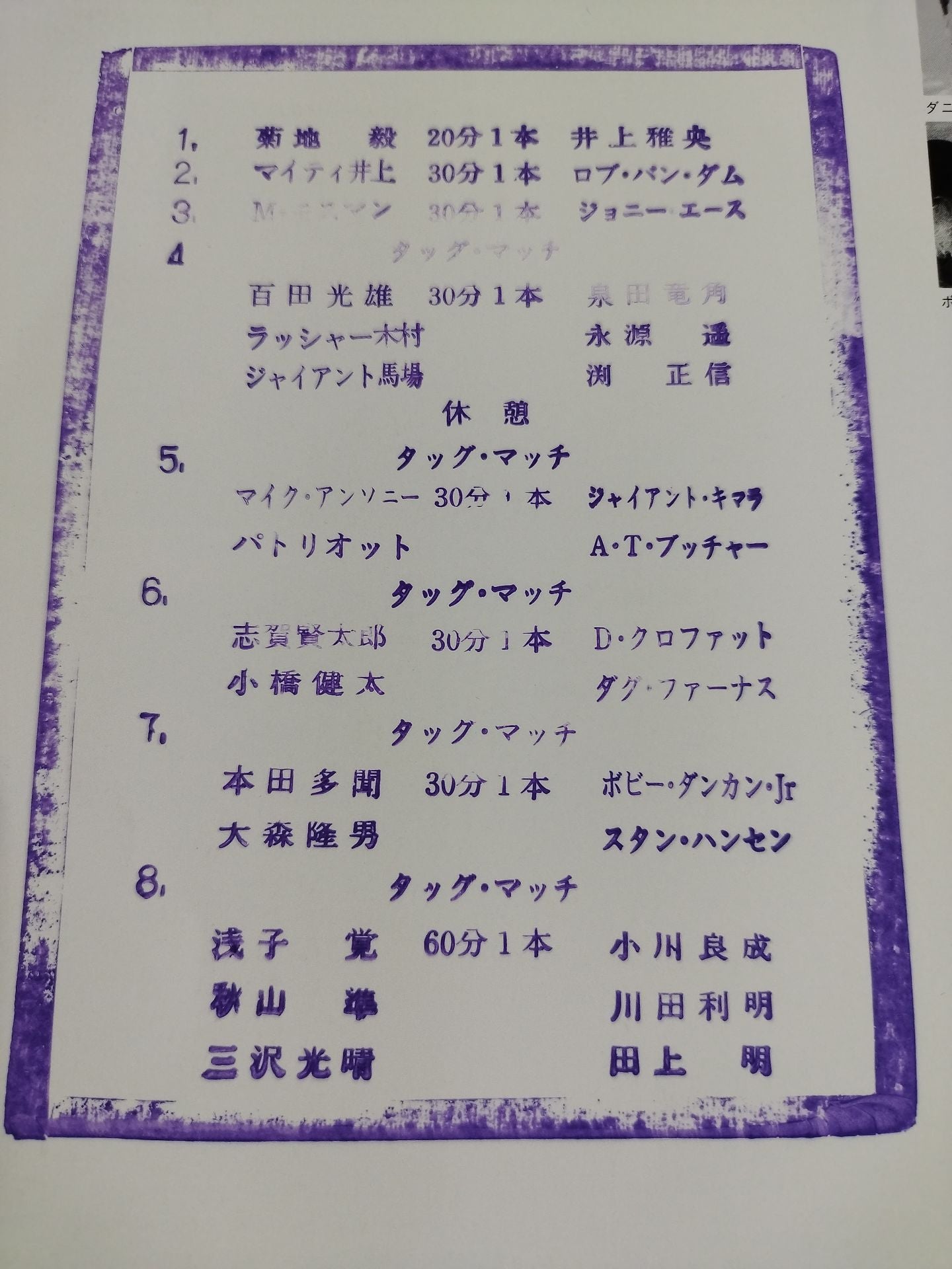 1995 Venue: Omiya Skating Center, Saitama / stamped with list of matches : Mitsuharu Misawa& Jun Akiyama & Satoru Asako vs Akira Taue & Toshiaki Kawada & Yoshinari Ogawa