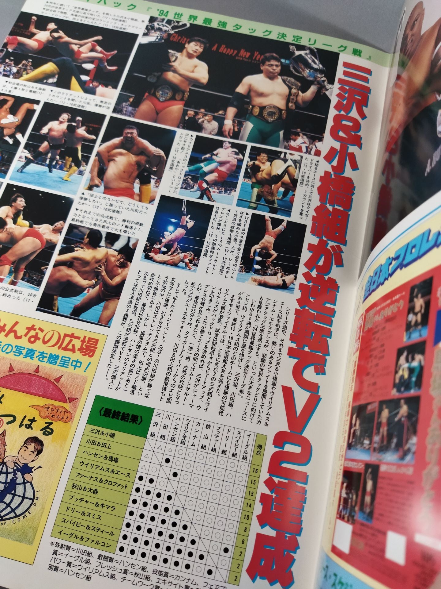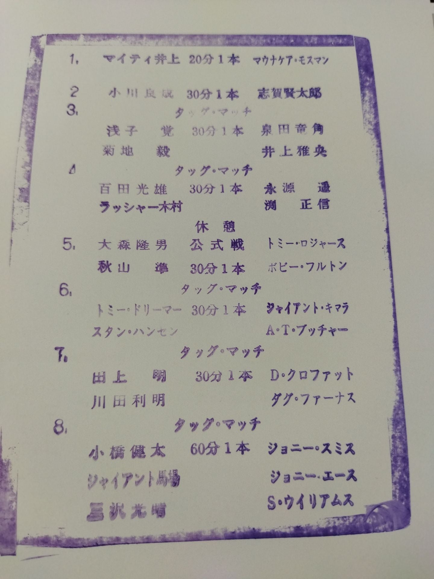 1995 Venue: Korakuen Hall (Final Round) / stamped with list of matches :Mitsuharu Misawa &Giant Baba &kenta Kobashi vs Steve Williams & Johnny Ace & Johnny Smith