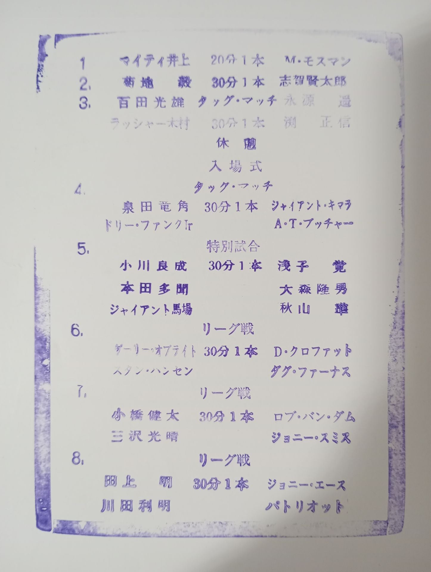 1995 Venue: Korakuen Hall (season opener) / Stamped with list of matches :【Official match】Toshiaki Kawada& Akira Taue vs Patriot & Johnny Ace