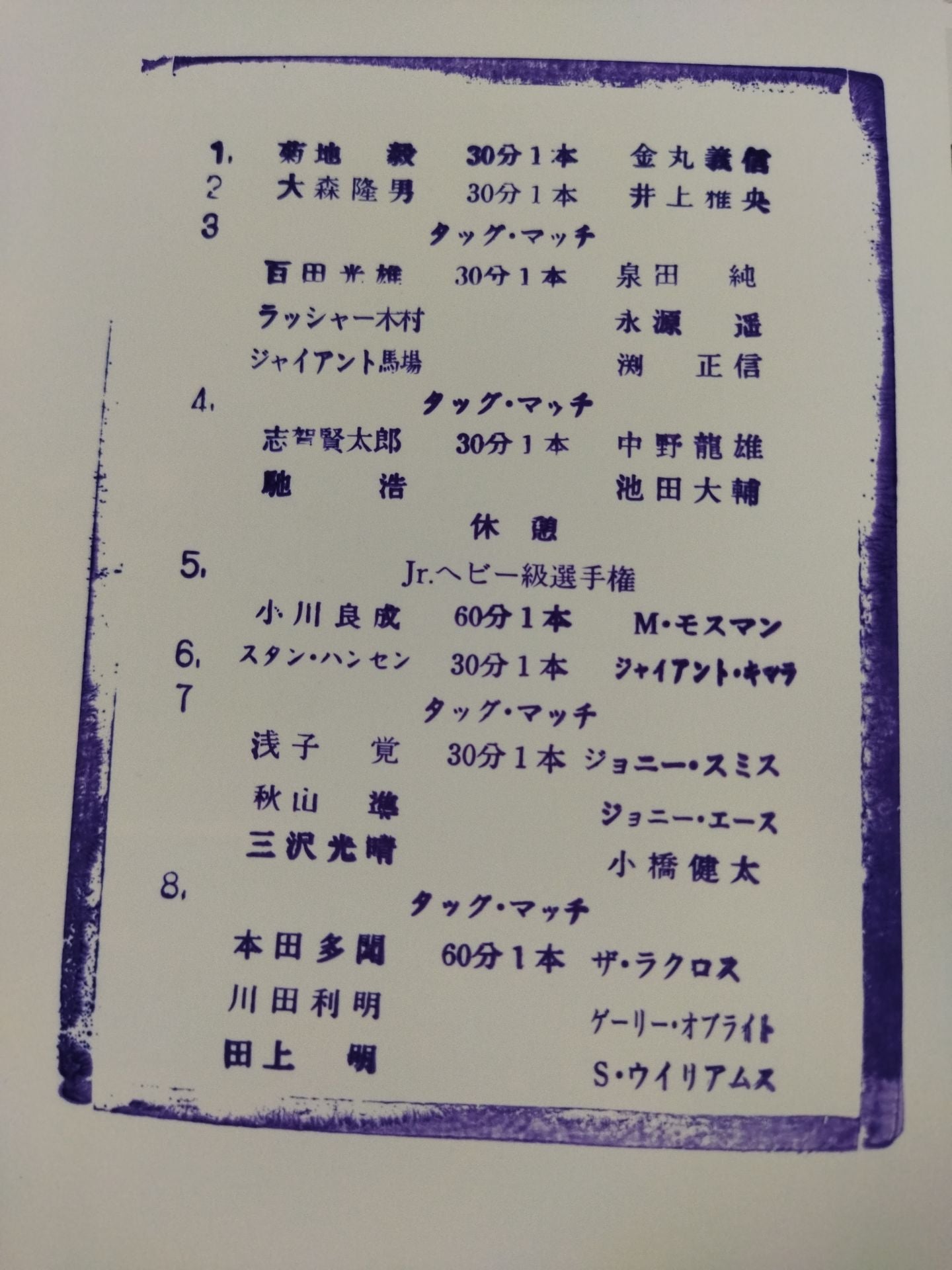1997 Venue: Korakuen Hall / stamped with list of matches :Akira Taue & Toshiaki Kawada & Tamon Honda vs Steve Williams & Gary Albright & The Lacrosse