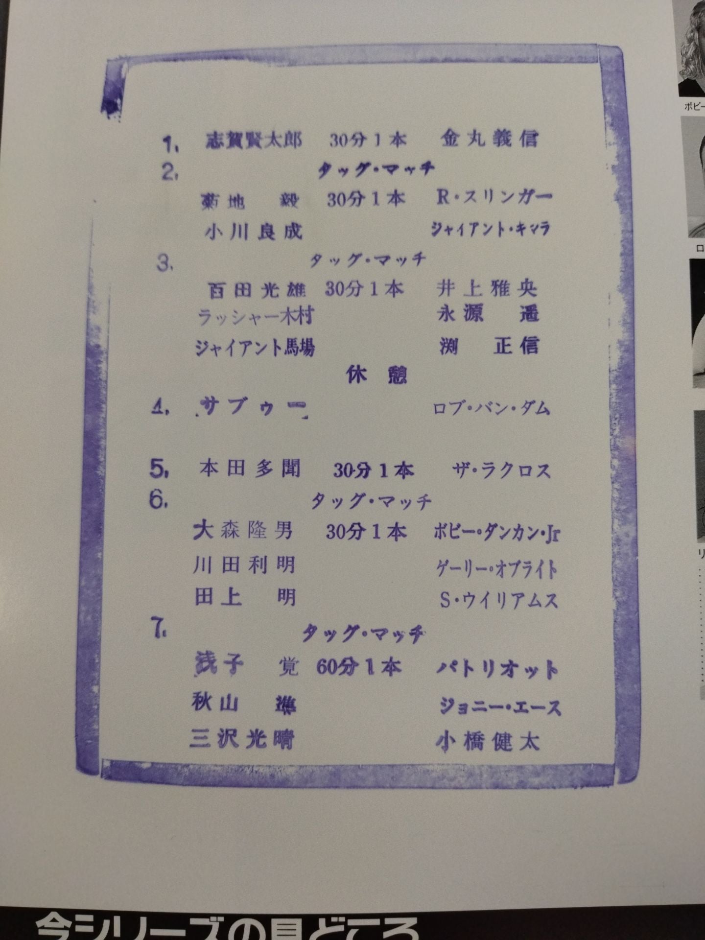 1997 Venue: Korakuen Hall / stamped with list of matches :Mitsuharu Misawa& Jun Akiyama & Satoru Asako vs Kenta Kobashi & Johnny Ace & Patriot