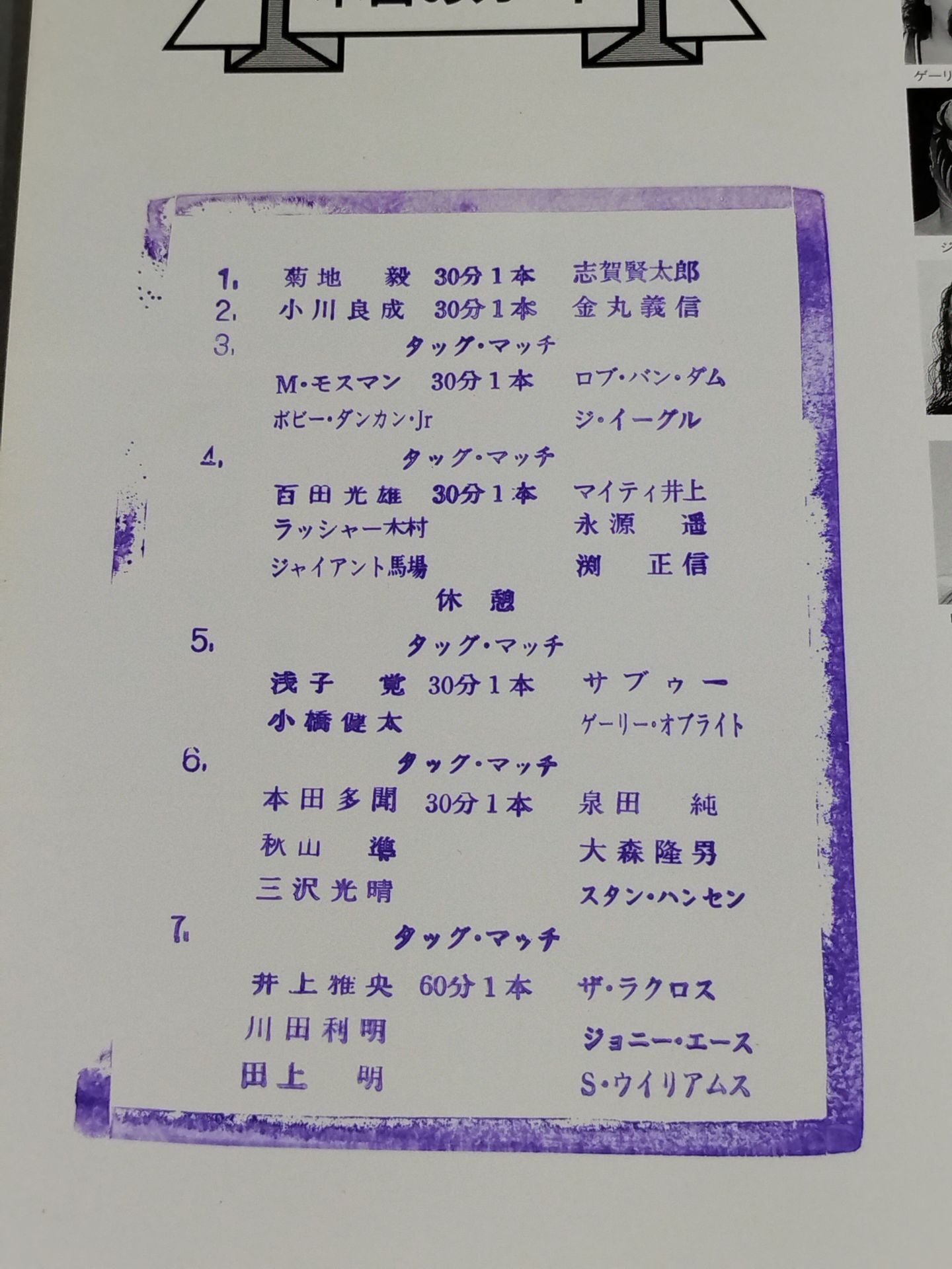 1997 Venue: Chiba, Numinami Town General Gymnasium / stamped with list of matches : Akira Taue& Toshiaki Kawada & Masao Inoue vs Steve Williams & Johnny Ace & The Lacrosse