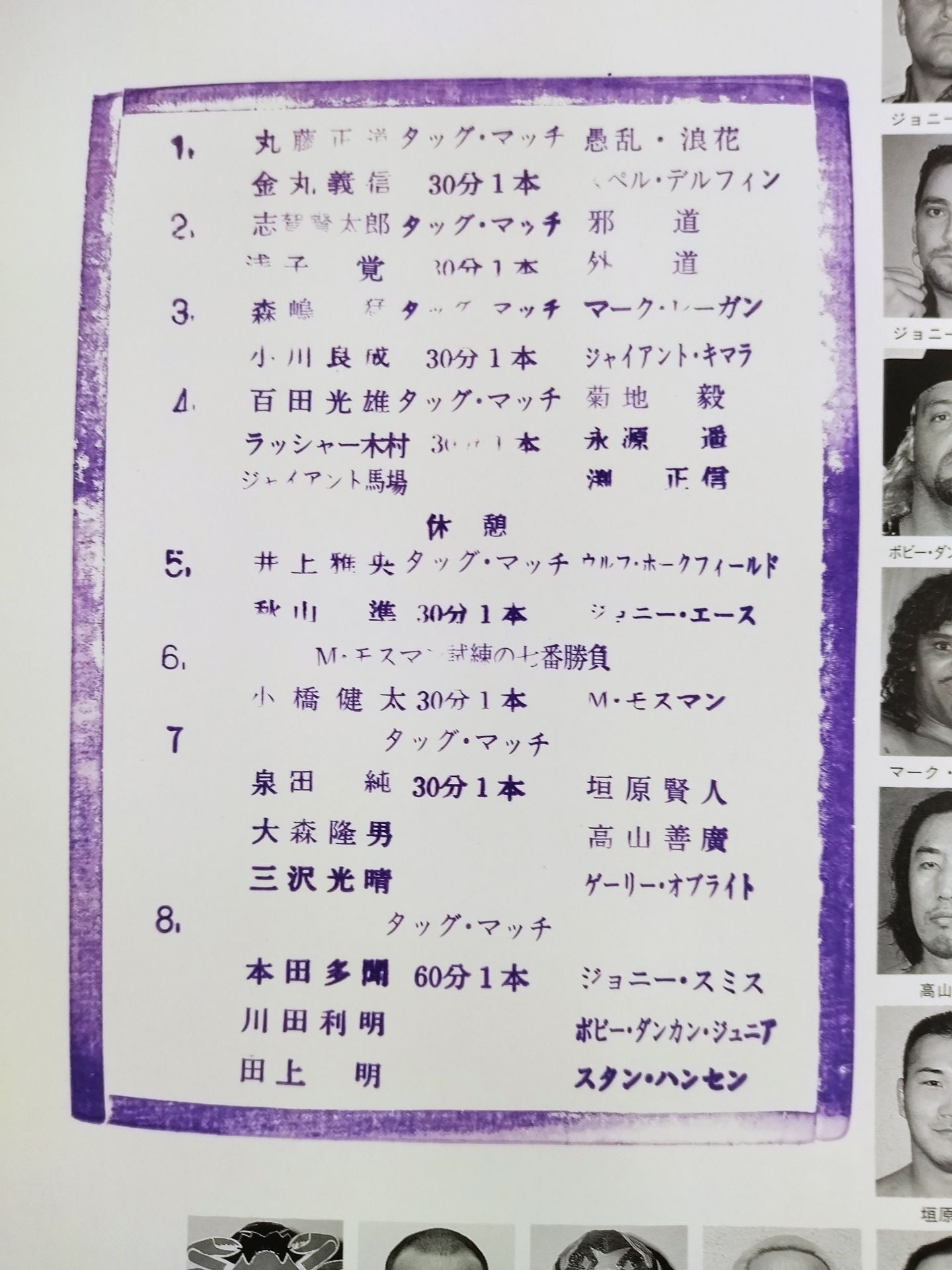 1998 Venue: Daigo Grand Dome, Kyoto / stamped with list of matches : Akira Taue & Toshiaki Kawada & Tamon Honda vs Stan Hansen & Bobby Duncan Jr. & Johnny Smith