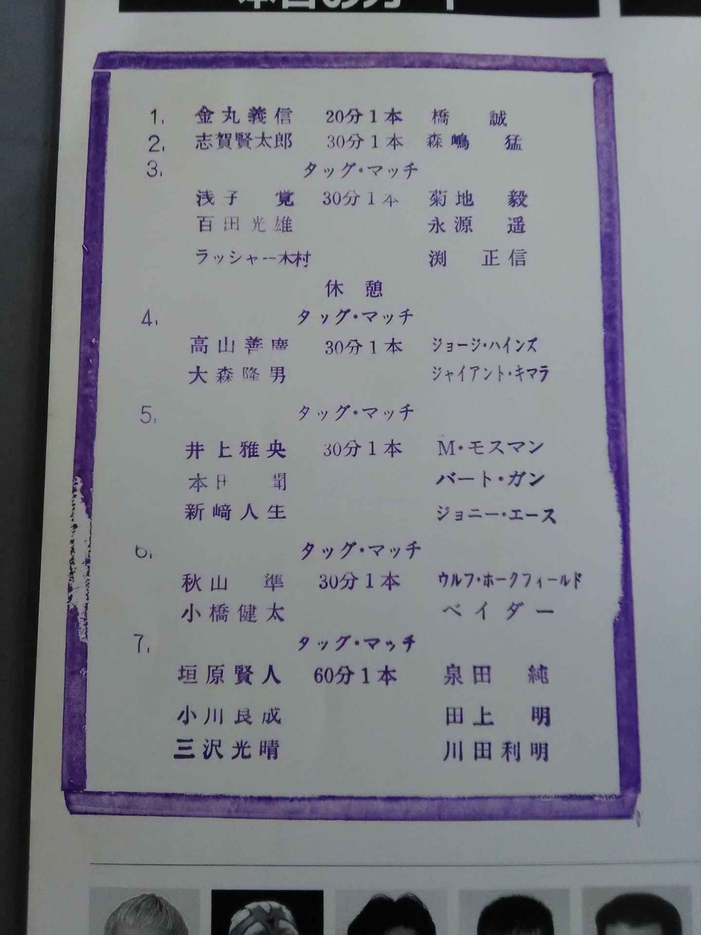 1999 Venue: Aomori Prefectural Sports Park Gymnasium / stamped with list of matches : Mitsuharu Misawa & Yoshinari Ogawa & Kento Kakihara vs Toshiaki Kawada & Akira Taue& Jun Izumida / Kenta Kobashi & Jun Akiyama vs Vader & Wolf Falkfield