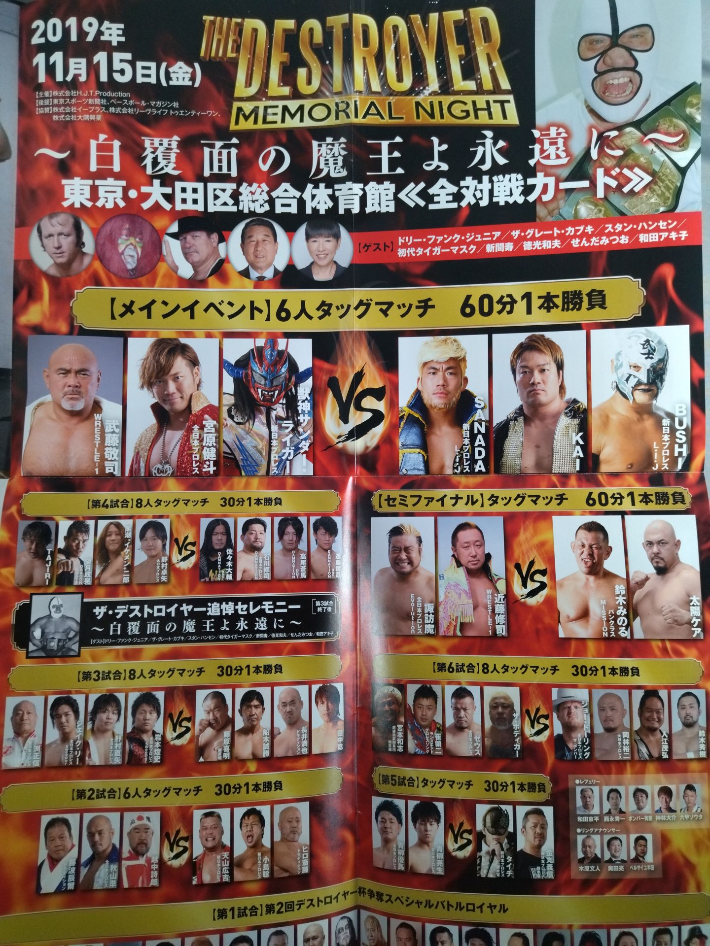 2019 Venue: Ota City General Gymnasium, Tokyo / List of the matches is printed : Muto Keiji & Kento Miyahara & Jushin Thunder Ligervs SANADA & KAI & BUSHI / SUWAMA & Shuji Kondo vs Minoru Suzuki & Taiyo Kea Unfold and the battle card poster will be posted on the entire back!