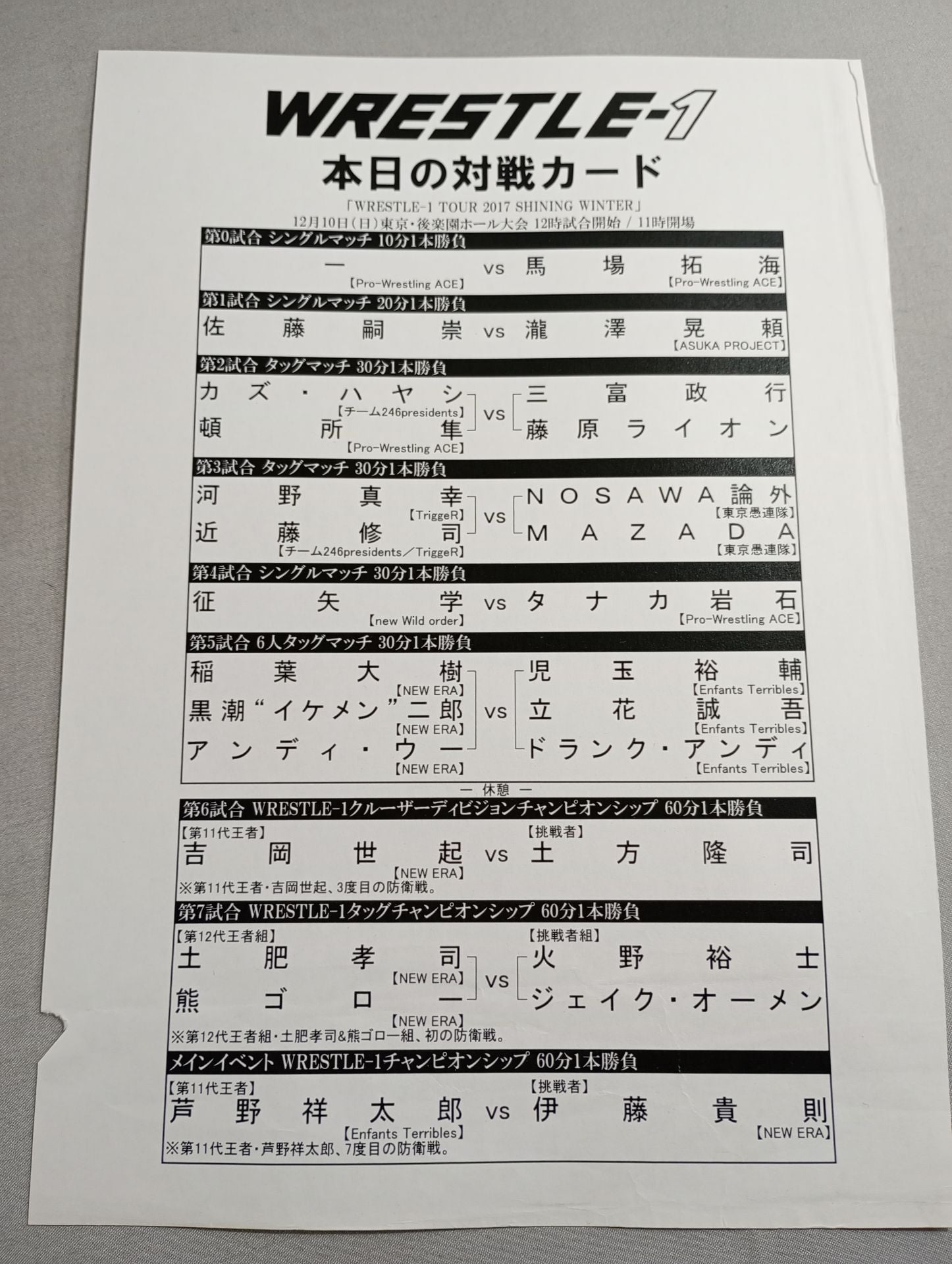 2017 Shuji Kondo , Kazu Hayashi, Tsugutaka Sato, Yuji Hino of more than 4 fightersHand signed autograph !! Venue: Korakuen Hall / List of the matches on the separate sheet : WRESTLE-1Championship] Shotaro Ashino vs Takanori Ito WRESTLE-1 /W-1/Wrestle1