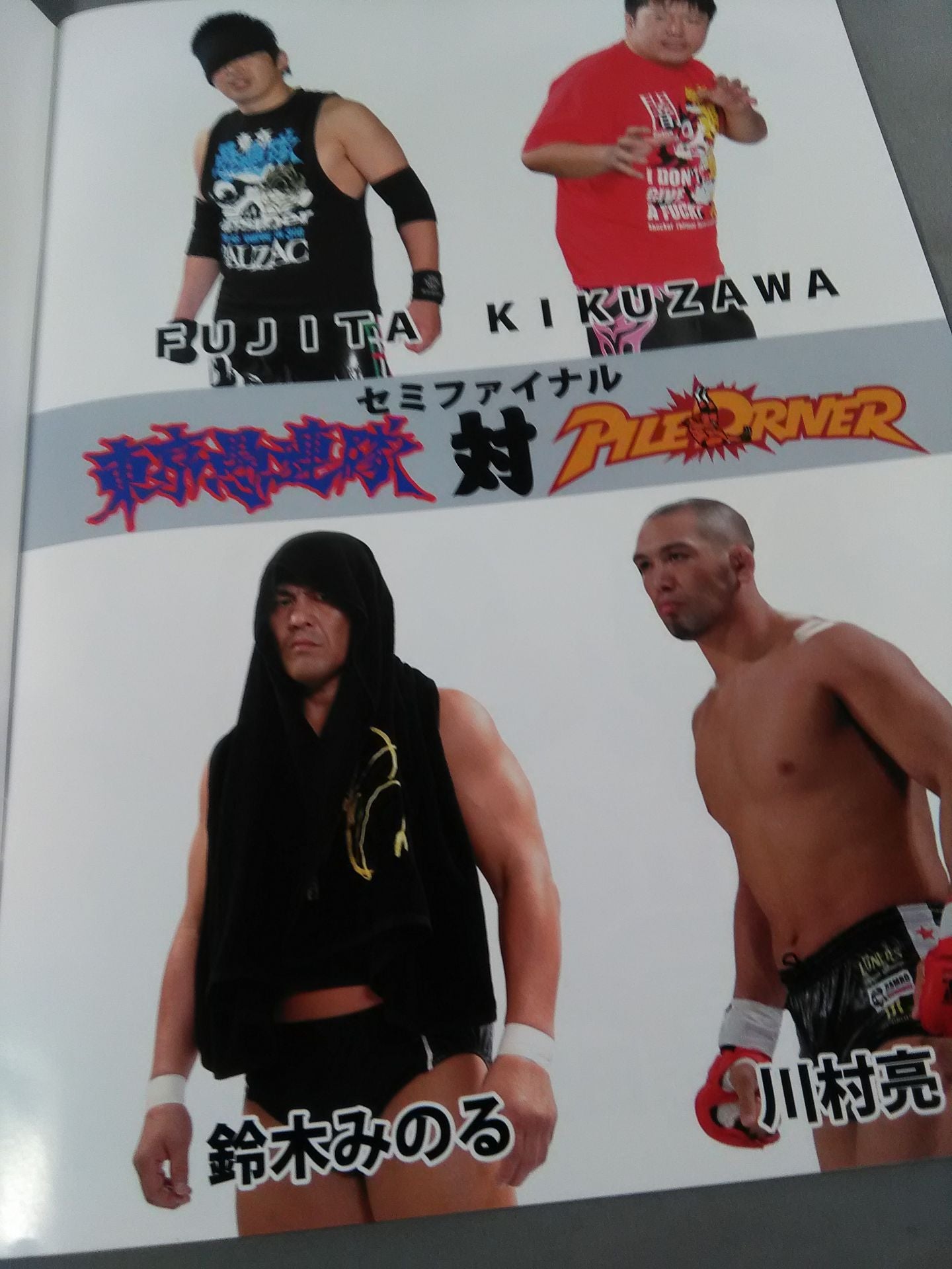 Minoru Fujita hand signed autograph , ★ 2015photo 2 sheets + Kankuro Hoshino &Minoru Fujita photo ★ with Venue: Shinjuku FACE / list of the matches is printed :【Tokyo World Heavyweight fightersMAZADA vs NOSAWA RONGAI