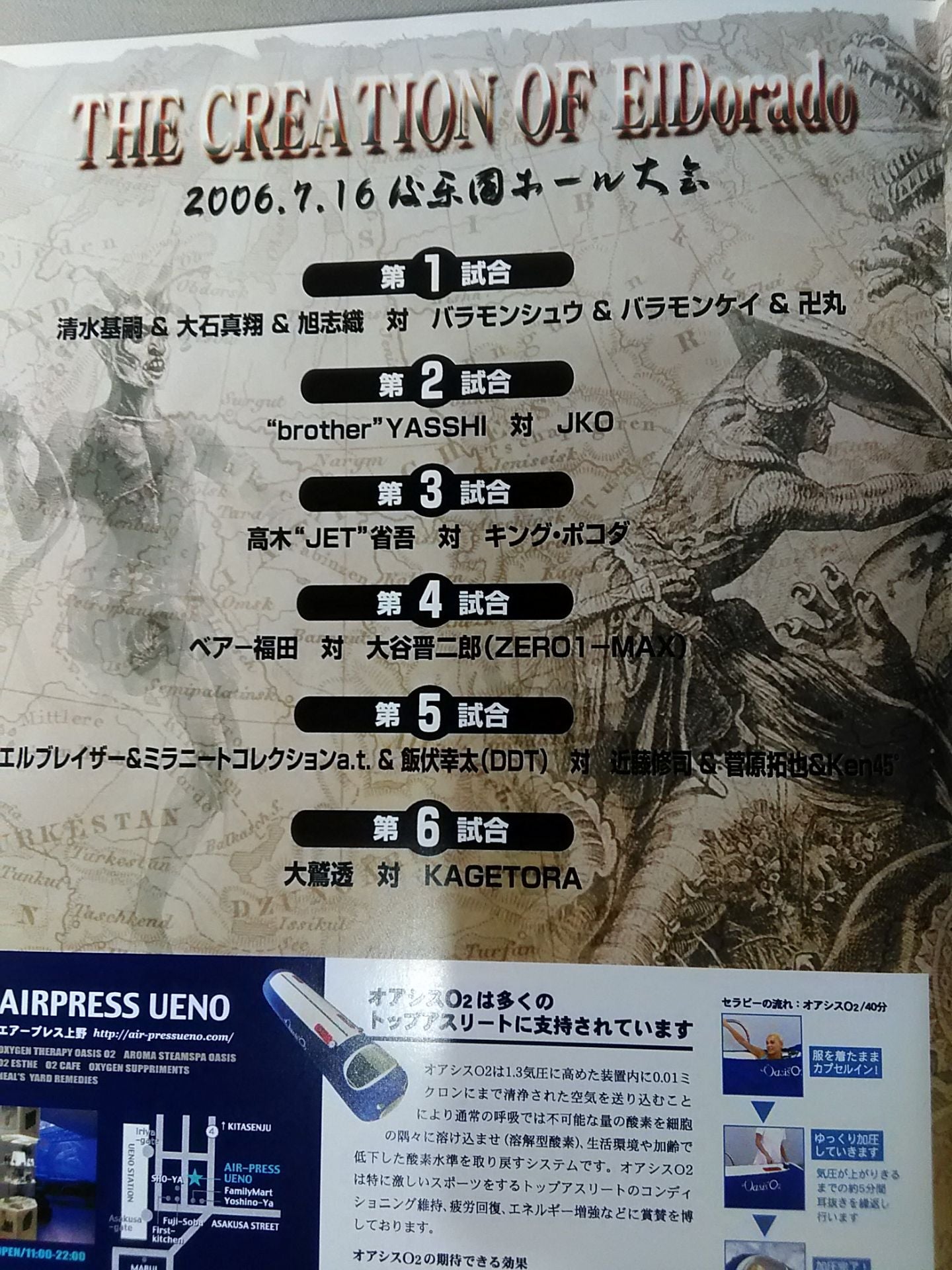 Venue: Korakuen Hall / list of the matches is printed :Toru Owashi vsKAGETORA Eldorado