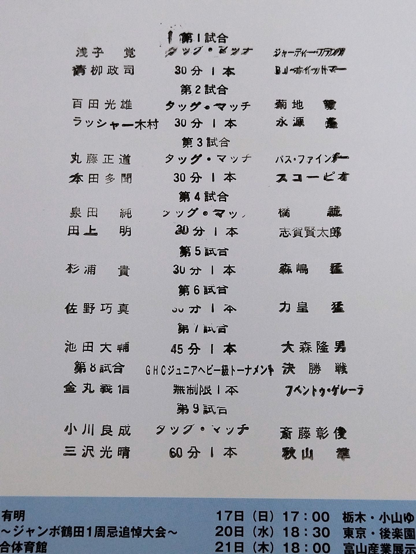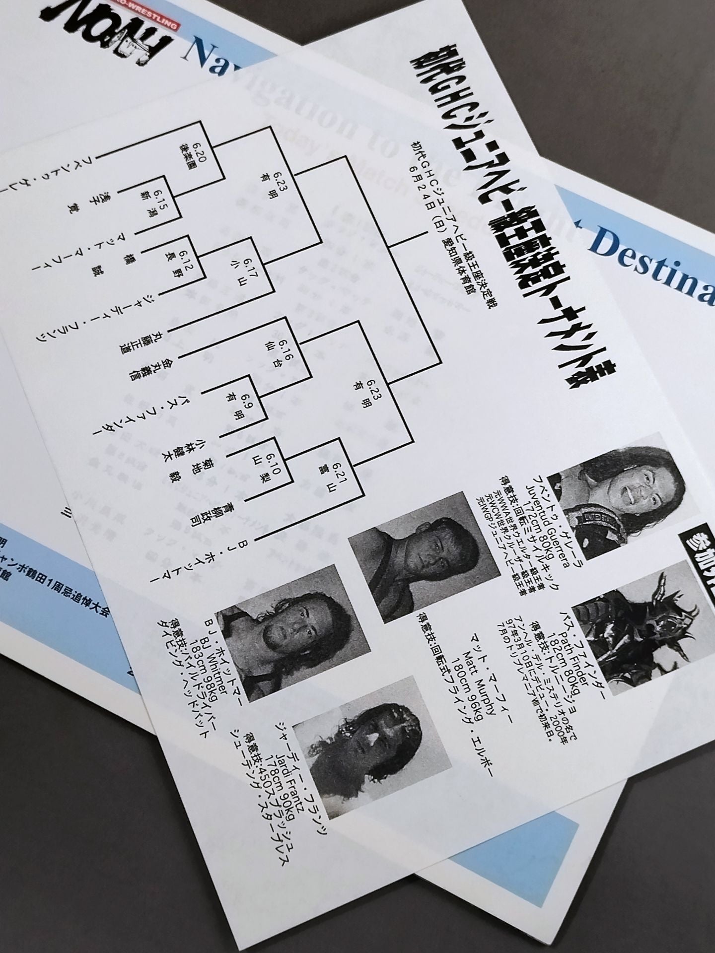 2001 Venue: Aichi Prefectural Gymnasium (Final Match) / stamped with list of matches : Mitsuharu Misawa & Yoshinari Ogawa vs Jun Akiyama &��Akitoshi / [ First GHC Junior Heavyweight Championship Tournament and Final] Yoshinobu Kanemaru vs Juventu Guerrera