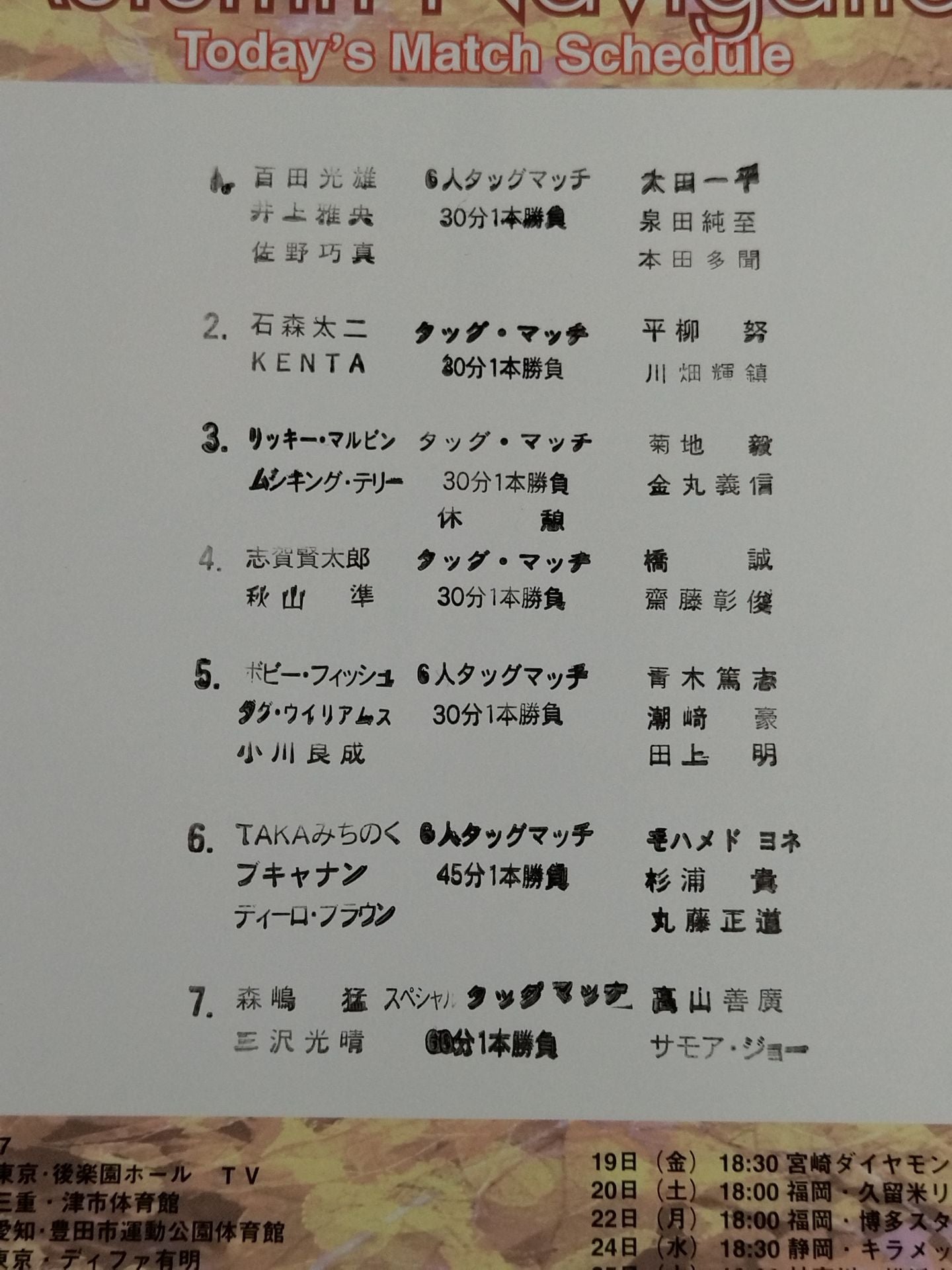 2007 Venue: Yokohama Red Brick Warehouse Building No. 1, 3rd Floor Hall / stamped with list of matches : Mitsuharu Misawa & Takeshi Morishima vs Samoa Joe & Yoshihiro Takayama