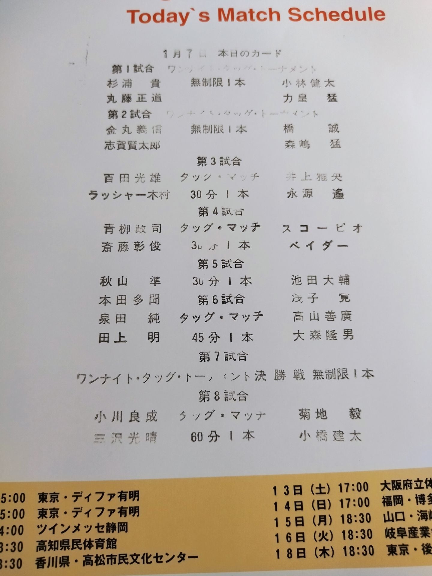 2001 Venue: Korakuen Hall / stamped with list of matches :Mitsuharu Misawa&Yoshinari Ogawa vs Kenta Kobashi & Tsuyoshi Kikuchi
