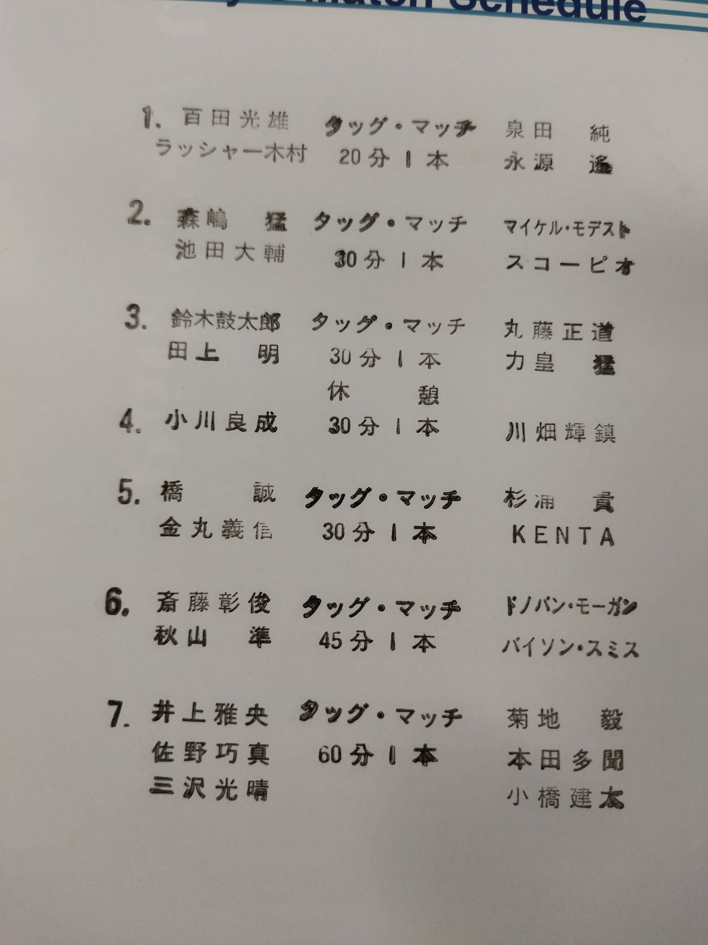 2003 Venue: Korakuen Hall (Opening Match) / stamped with list of matches :Mitsuharu Misawa & Takuma Sano & Masao Inoue vs Kenta Kobashi & Tamon Honda & Tsuyoshi Kikuchi