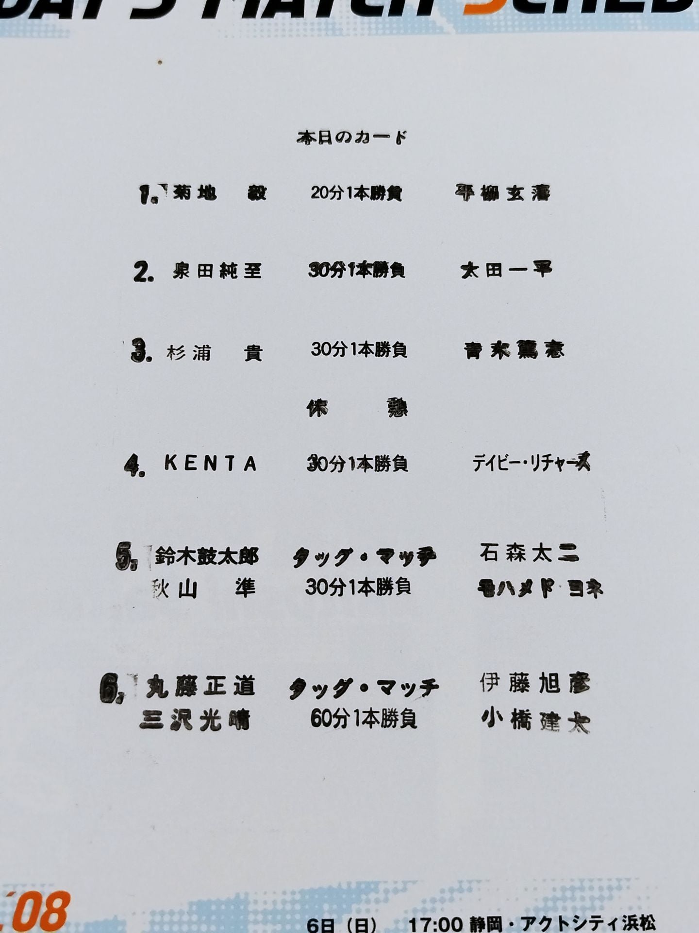 2008 Venue: Miyagino Gymnasium, Miyagi / stamped with list of matches : Mitsuharu Misawa &Naomichi Marufuji vsKenta Kobashi &Asahhiko Ito Pro-wrestling ・Noah presents SEMex Sendai
