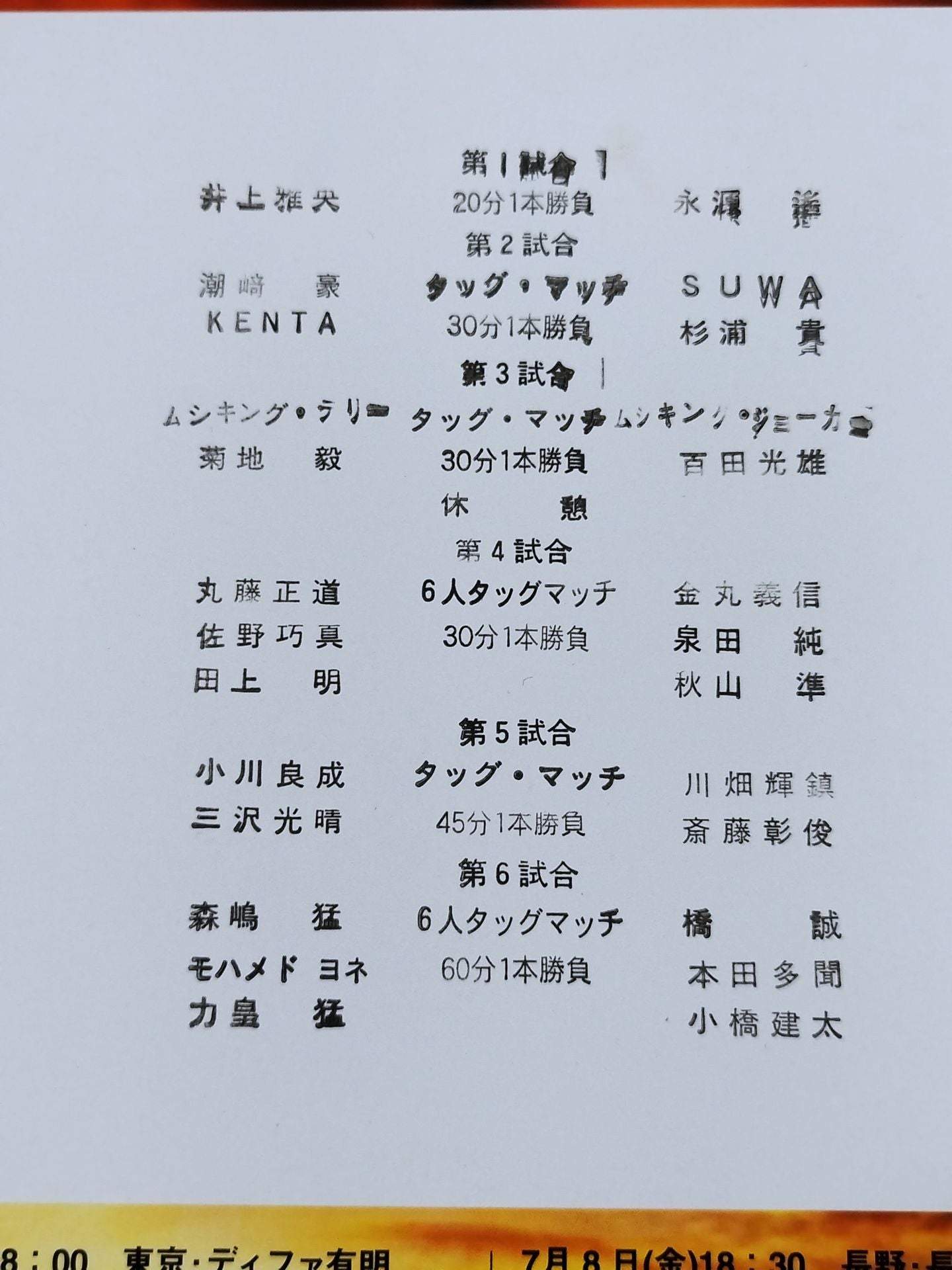 2005 Venue: Miyagi・Zeep Sendai / stamped with list of matches : Takeshi Rikio & Muhammad Yone & Takeshi Morishima vs Kenta Kobashi & Tamon Honda & Makoto Hashi