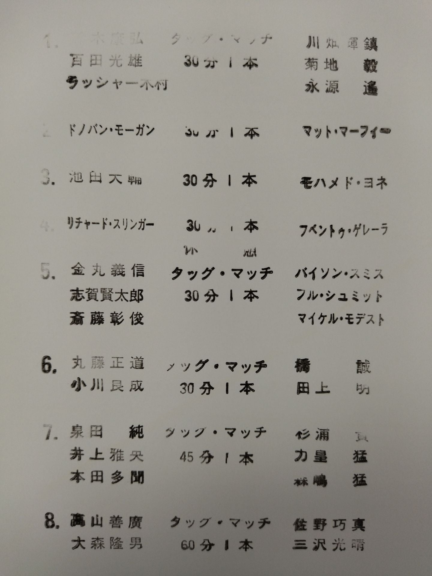 Venue: Tokyo Diffa Ariake / stamped with list of matches : Takao Omori &Yoshihiro Takayama vs Mitsuharu Misawa & Takuma Sano