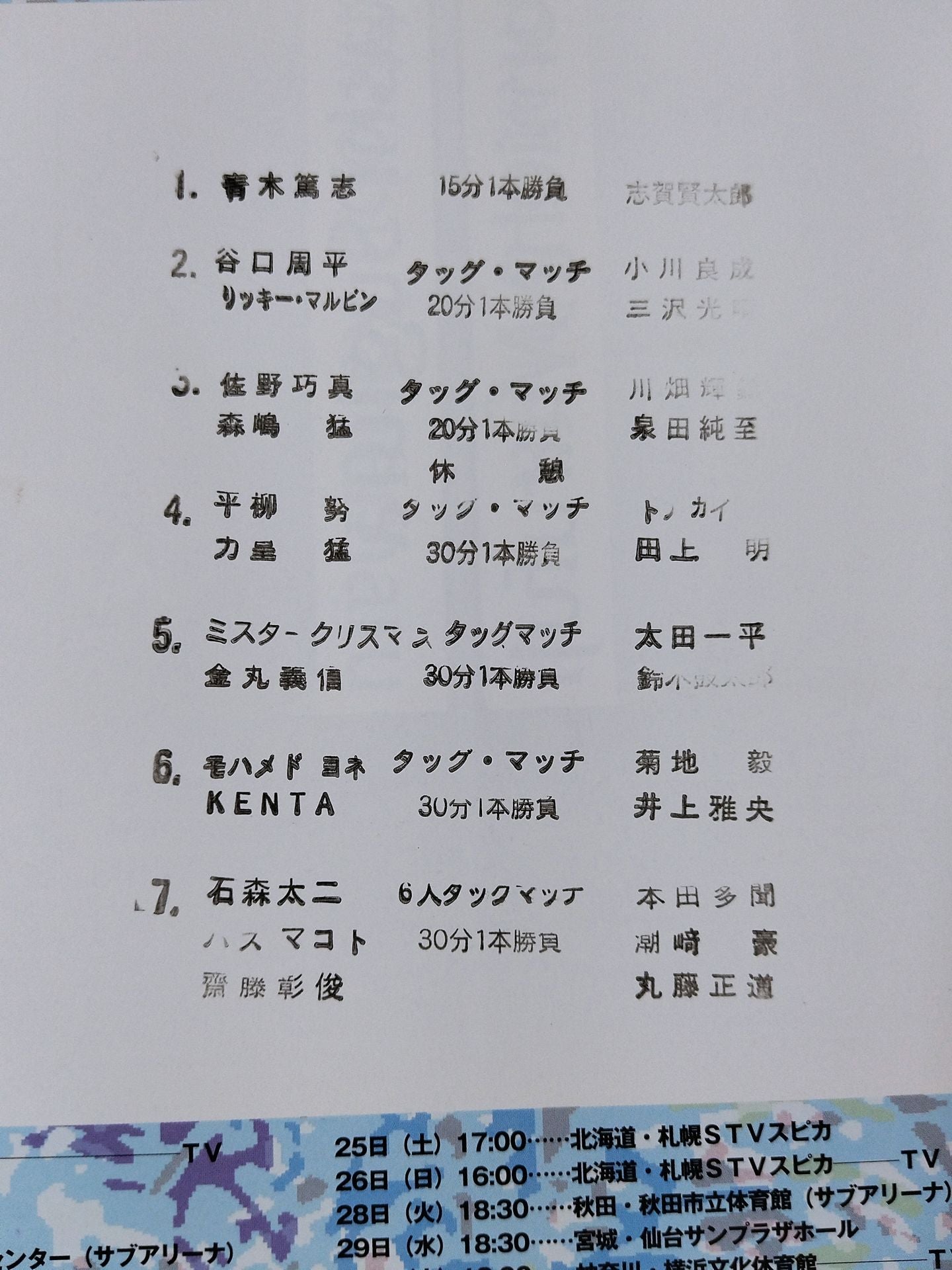 2006 Venue: Diffa Ariake / stamped with list of matches : Akitoshi Saito & Koto Hasuma ( Makoto Hashi )&Taiji Ishimori vs Naomichi Marufuji &Go Shiozaki &Tamon Honda NOAHful Gift in Differ’06