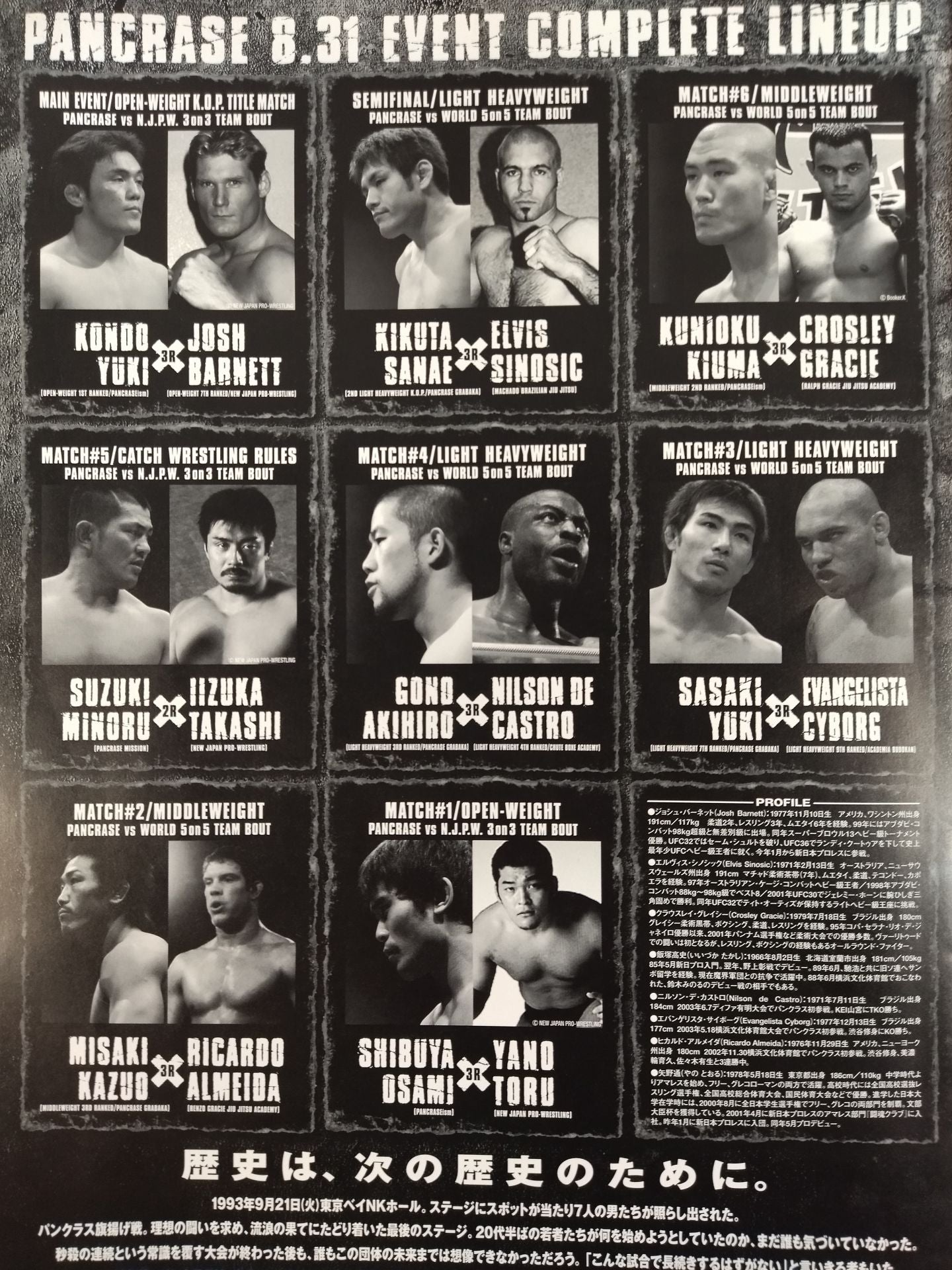 2003 Venue: Ryogoku / List of the matches is printed :【 Open Weights King of Pancrase Title Match] Yuki Kondo vs Josh Barnett