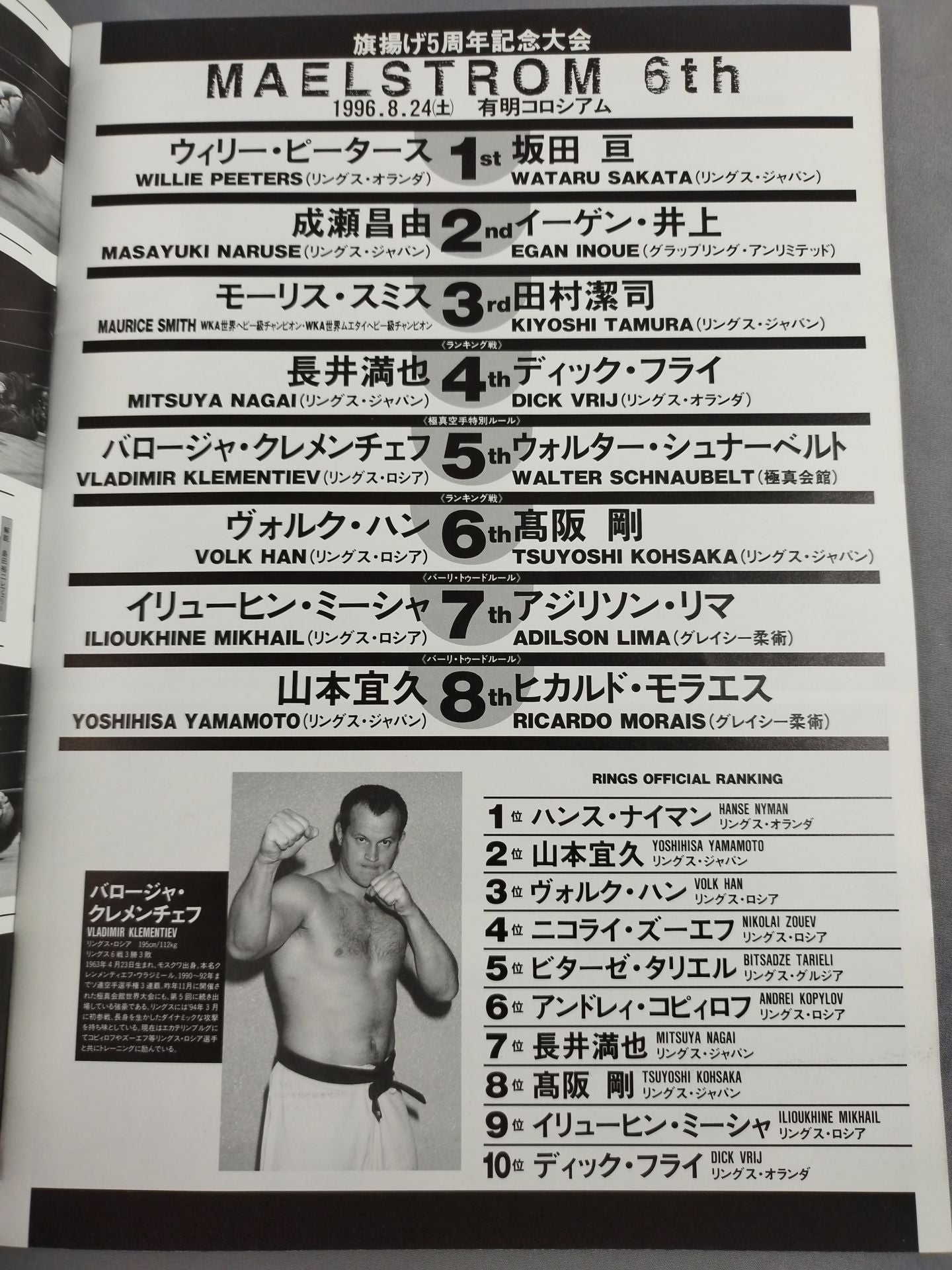 1996 Venue: Ariake Coliseum: List of the matches is printed : Nobuhisa Yamamoto vs Hicardo Moraes / Volk Han vs Tsuyoshi Kosaka / Mitsuya Nagai vs Dick Fry / Maurice Smith vs Kiyoshi Tamura