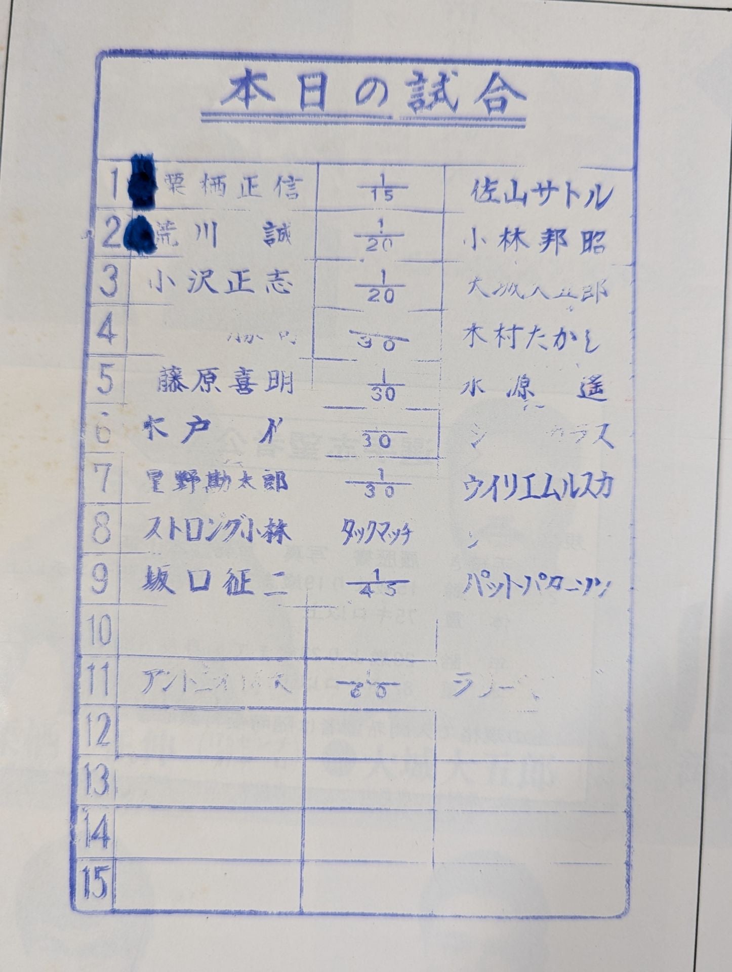 1976 Williem Ruska, Cien Caras , Strong Kobayashi More than 3 fighters hand signed autographstamped with list of matches : Antonio Inoki vs Larry Henning / Osamu Kido vs Shen Karasu