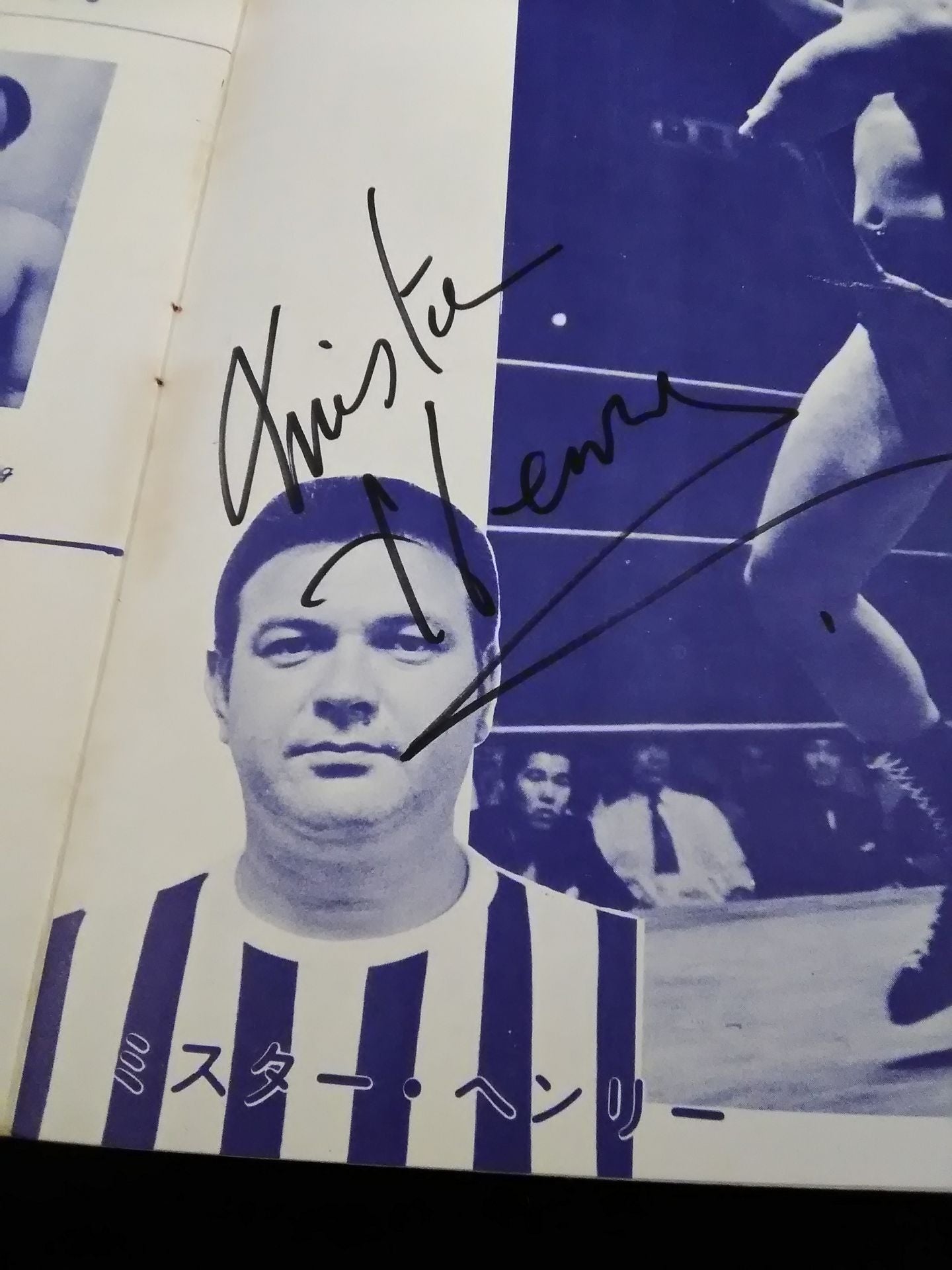 1972 Red Pimpanelle, Wayne Bridge, Harold Sakaguchi, Katsuhisa Shibata, Masaharu Ito, Mr. Henry (referee) 5 fighters , 1 referee, 6 hand signed autograph!! / Unstamped