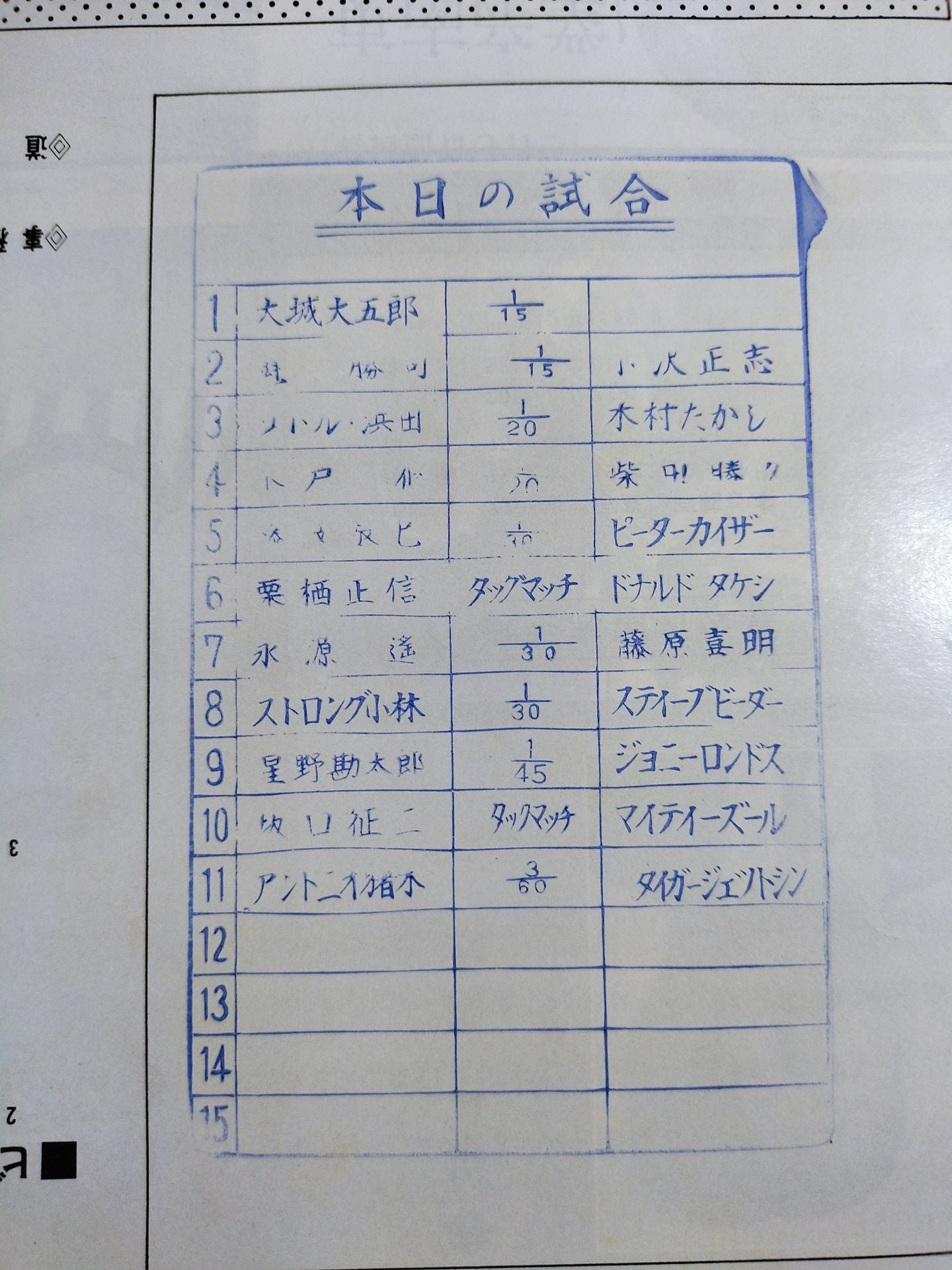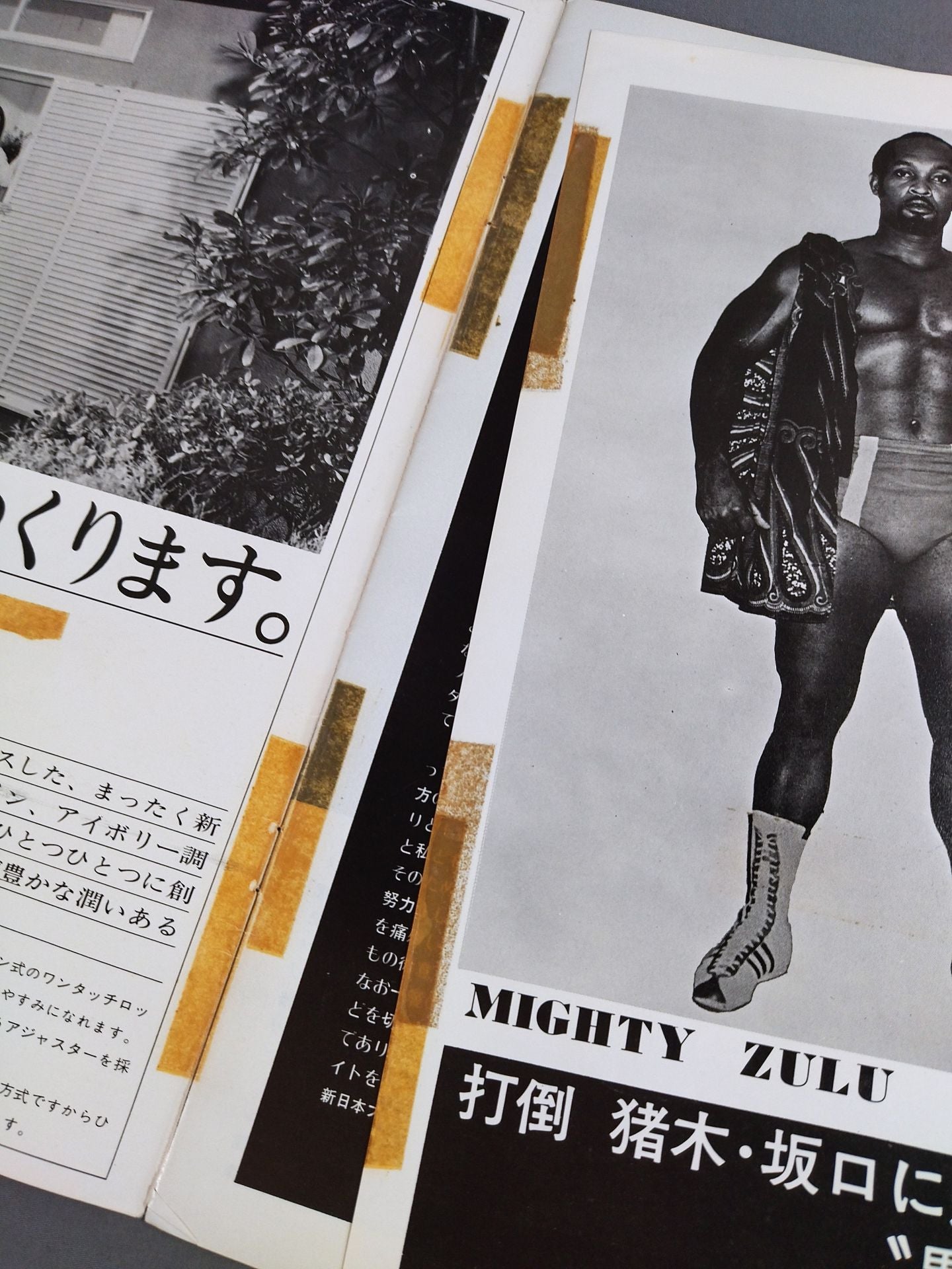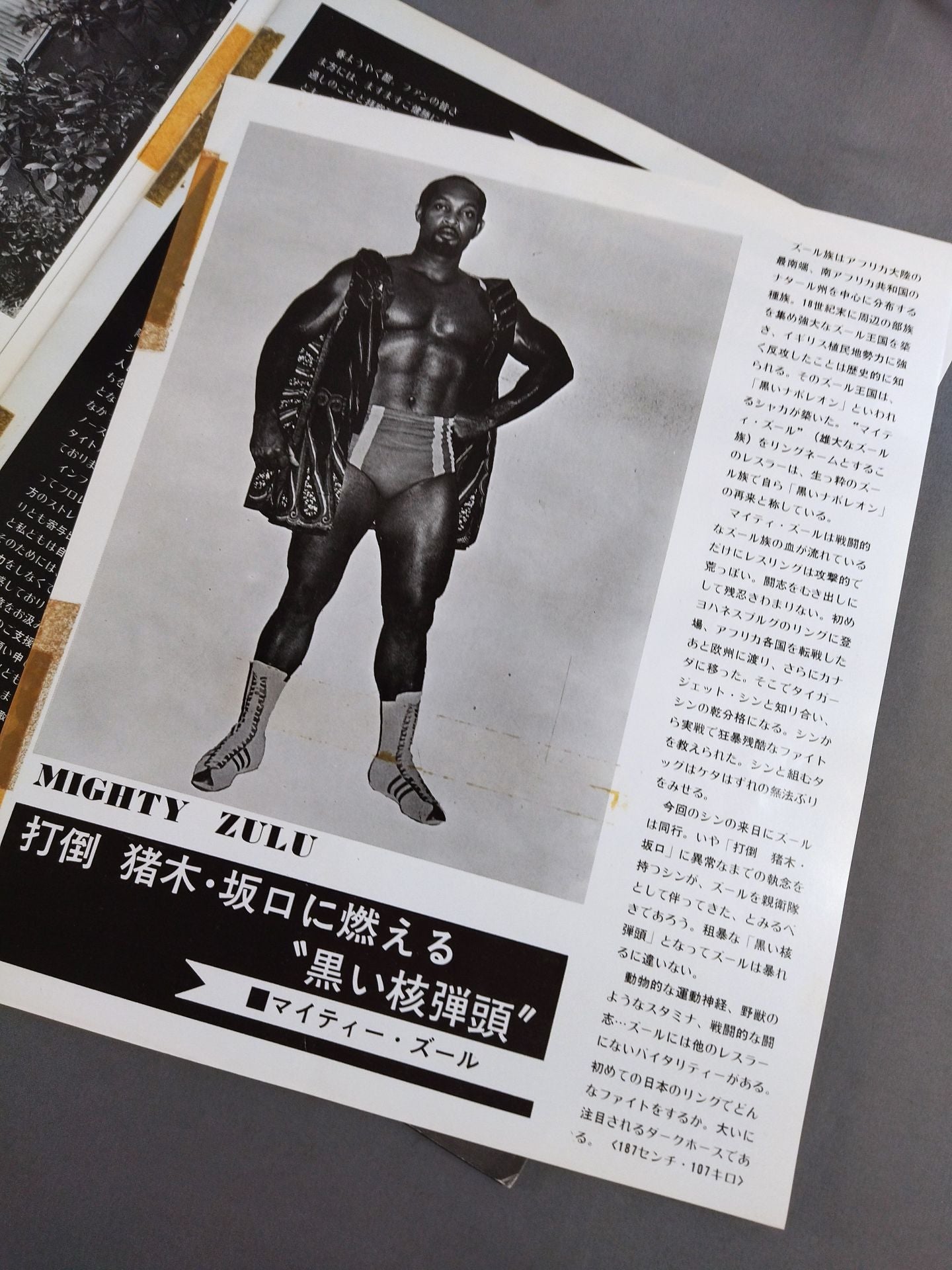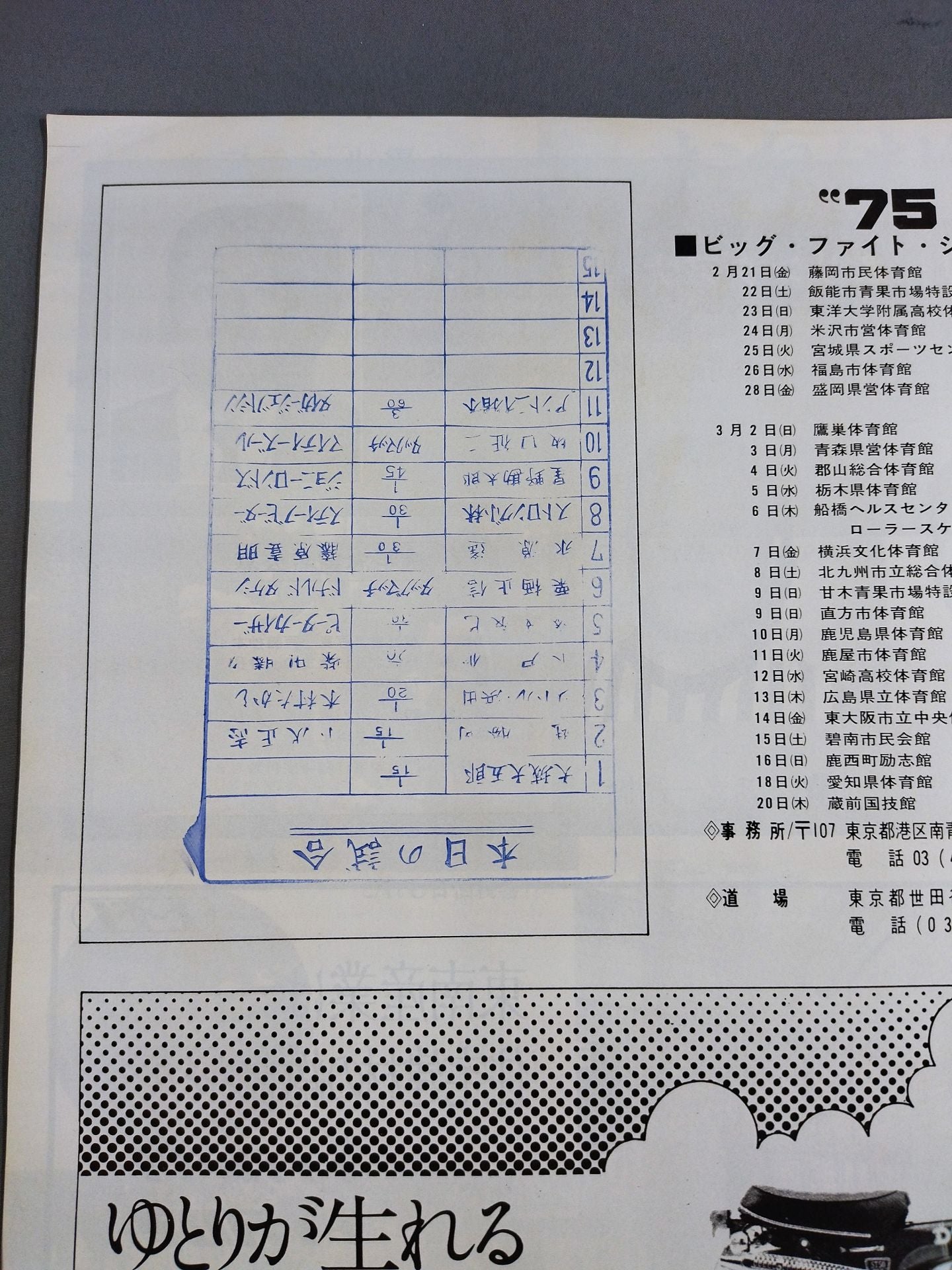 1975 Venue: Aichi Prefectural Gymnasium / stamped with list of matches : [NWA North American Tag Team] fighters Match] Antonio Inoki & Seiji Sakaguchi vs Tiger Jeet Singh & Mighty Zulu
