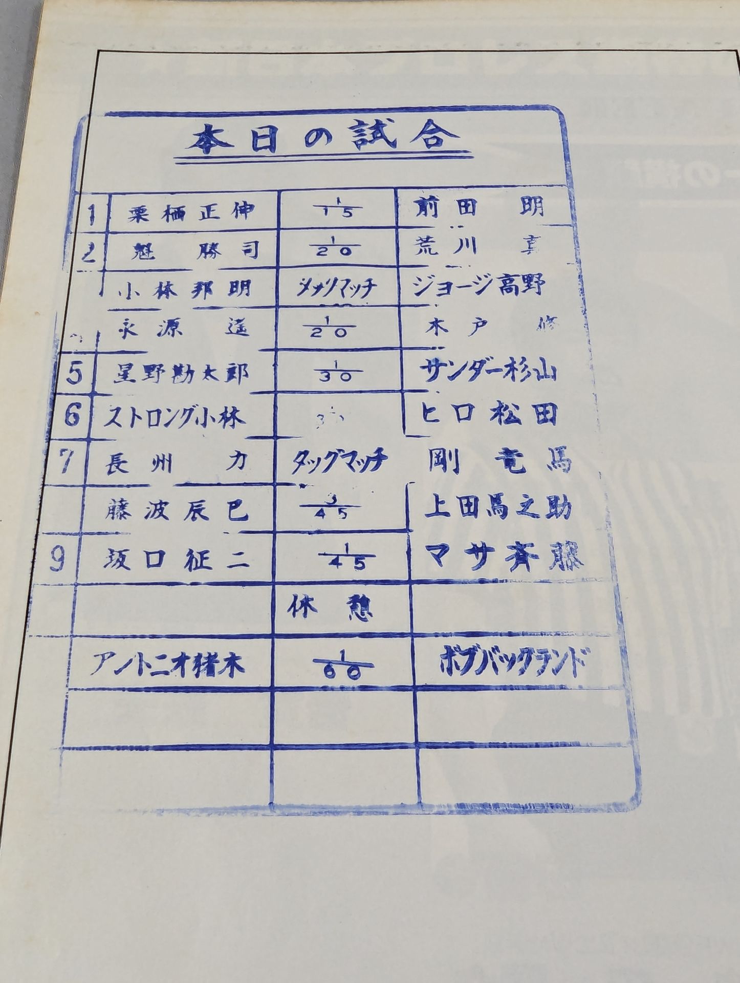 1978 Venue: Osaka Prefectural Gymnasium / stamped with list of matches : [WWWF Heavyweightfighters Match] Antonio Inoki vs Bob Backlund / Seiji Sakaguchi vsMasa Saito