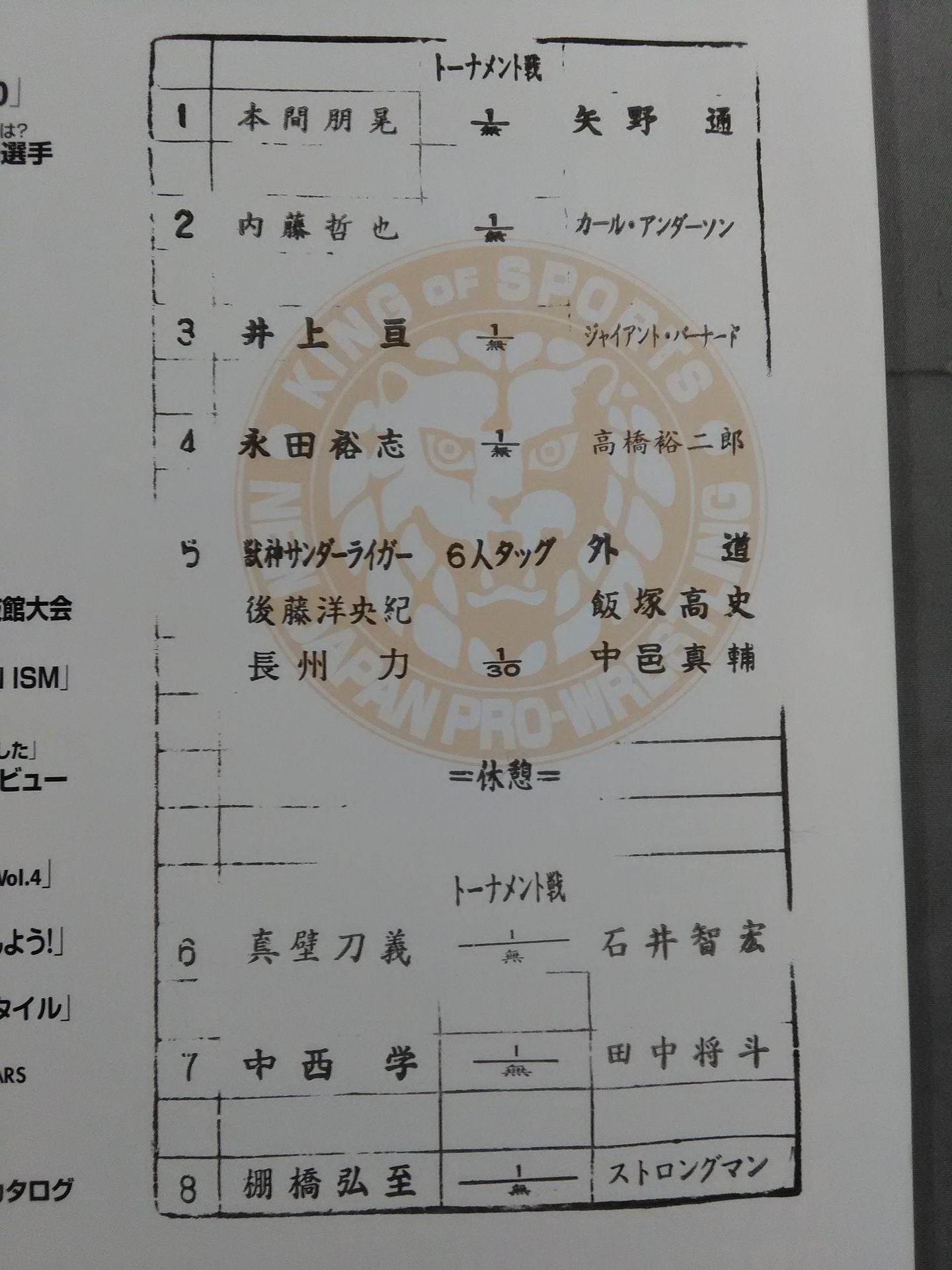 2010 Venue: Korakuen Hall (season opener) / stamped with list of matches :【Tournament Match】Hiroshi Tanahashivs Strongman / [Tournament Match] Manabu Nakanishi vs Masato Tanaka NEW JAPAN CUP