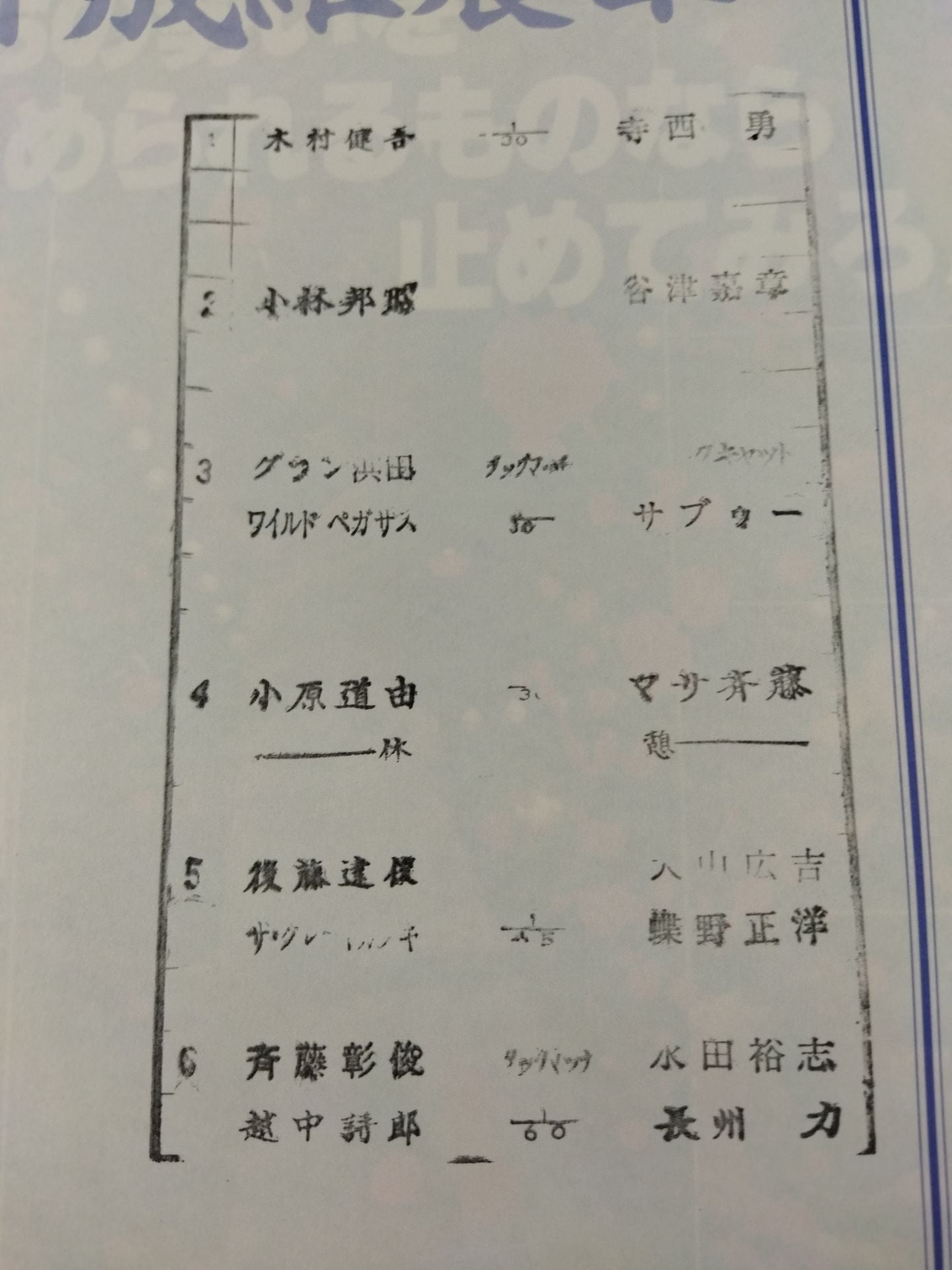 1995 Venue: Nagoya Congress Center Event Hall / stamped with list of matches : Shiro Koshinaka & Akitoshi Saito vs Riki Choshu & Yuji Nagata