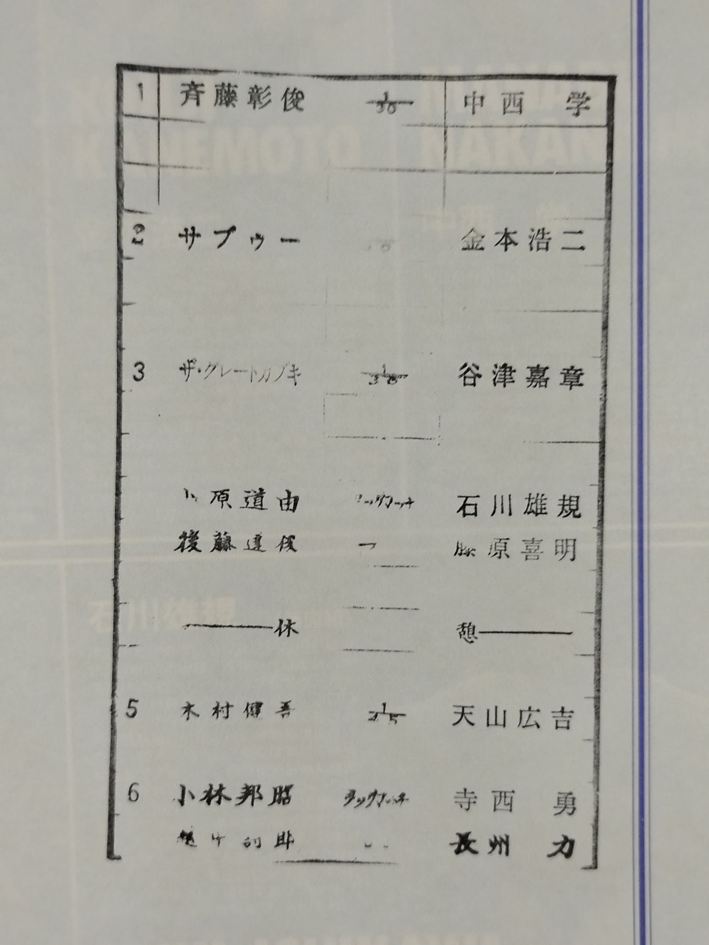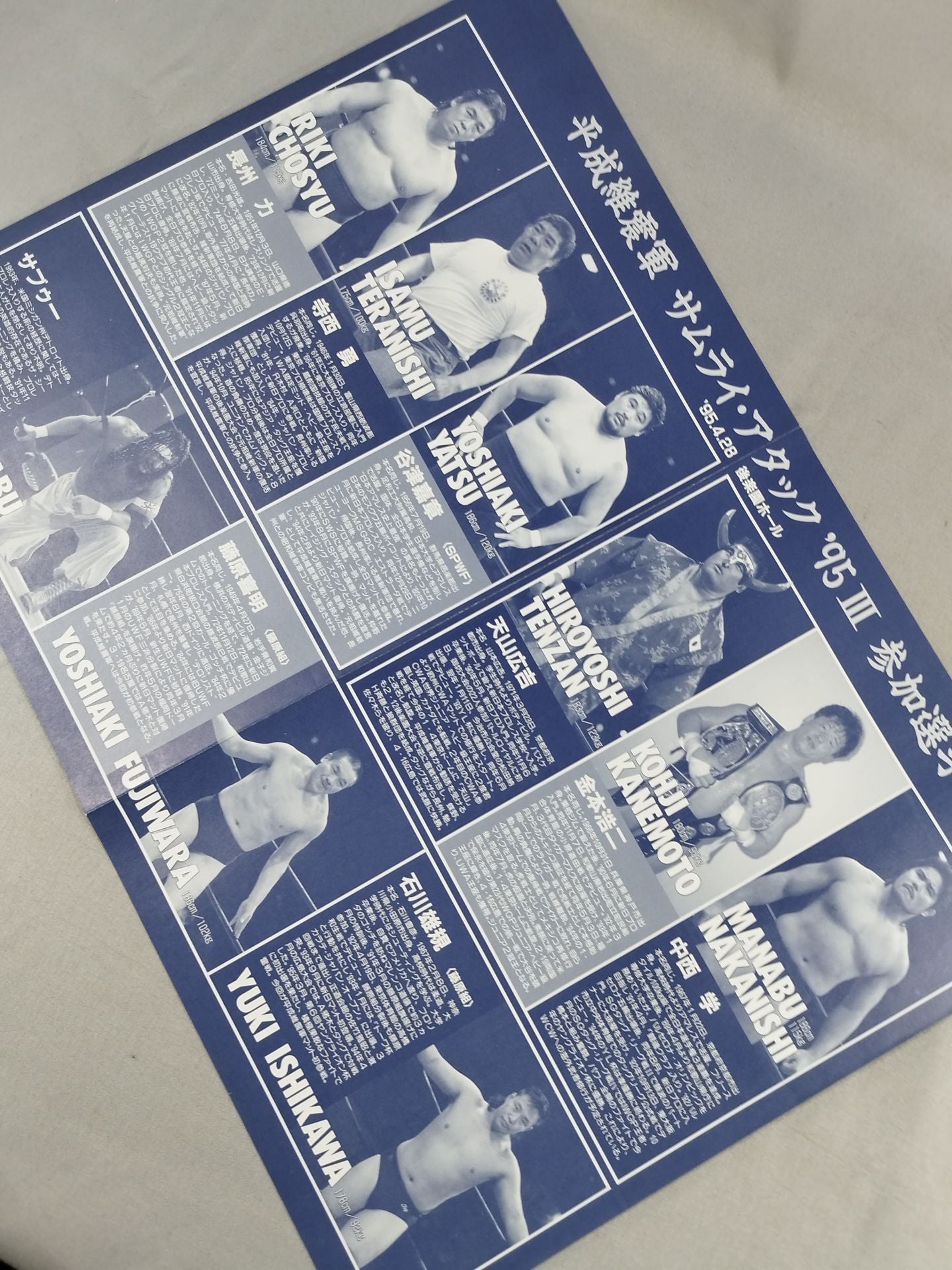 1995 Venue: Korakuen Hall / stamped with list of matches :Shiro Koshinaka& Kuniaki Kobayashi vs Riki Choshu & Isamu Teranishi / Samurai Attack 95 III. ~Permanent Battlefield~