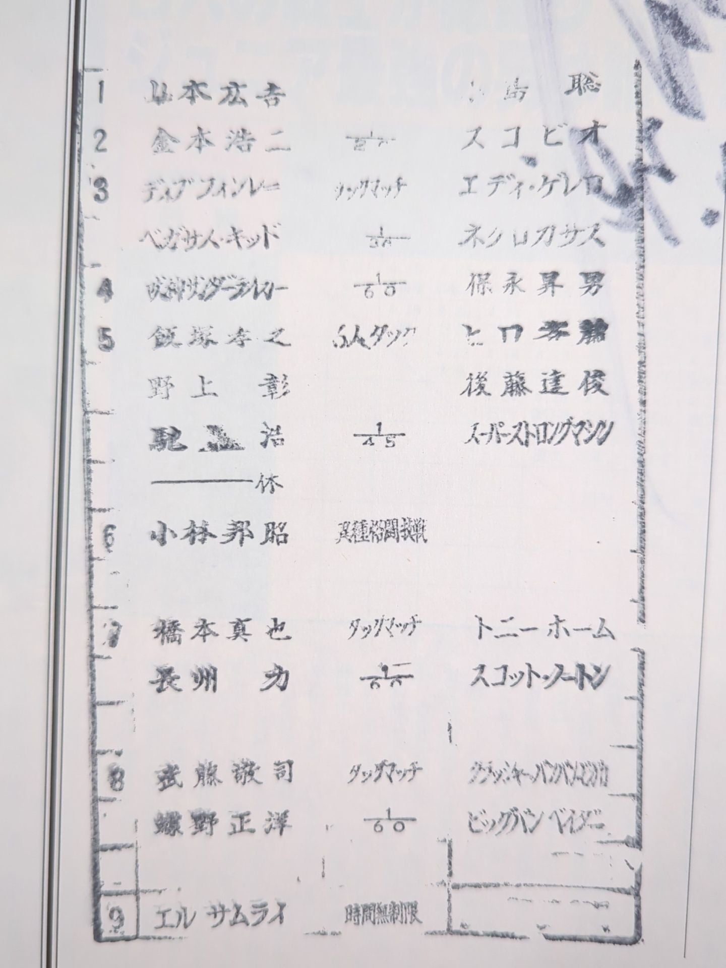 1992 Osamu Nishimura , Hidekazu Tanaka More than 2 hand signed autograph !! Venue: Ryogoku (Final Match) / Stamped with list of matches : 【 Top of the Super Junior III. Championship] El Samurai vs Jushin Thunder Liger / Masahiro Chono & Muto Keiji vsBig Van Vader & Crusher Bam Bam Bigelow / Riki Choshu & Shinya Hashimoto vs Scott Norton & Tony Home / [Mixed Martial Arts Fight] Kuniaki Kobayashi vs Blank ( Akitoshi Saito) Explosion Tour '92