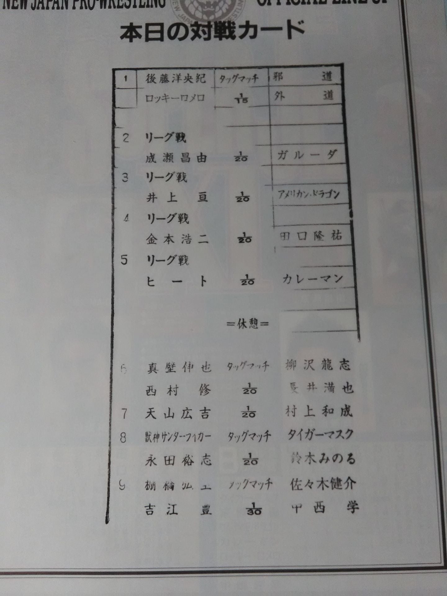 2004 Hidekazu Tanaka (currently Kero Tanaka) Linguana's hand signed autograph ! Venue: Saitama / Soka City Sports and Health City Memorial Gymnasium / stamped with list of matches : Yutaka Yoshie & Hiroshi Tanahashi vs Manabu Nakanishi & Kensuke Sasaki Best of the Super Junior XI