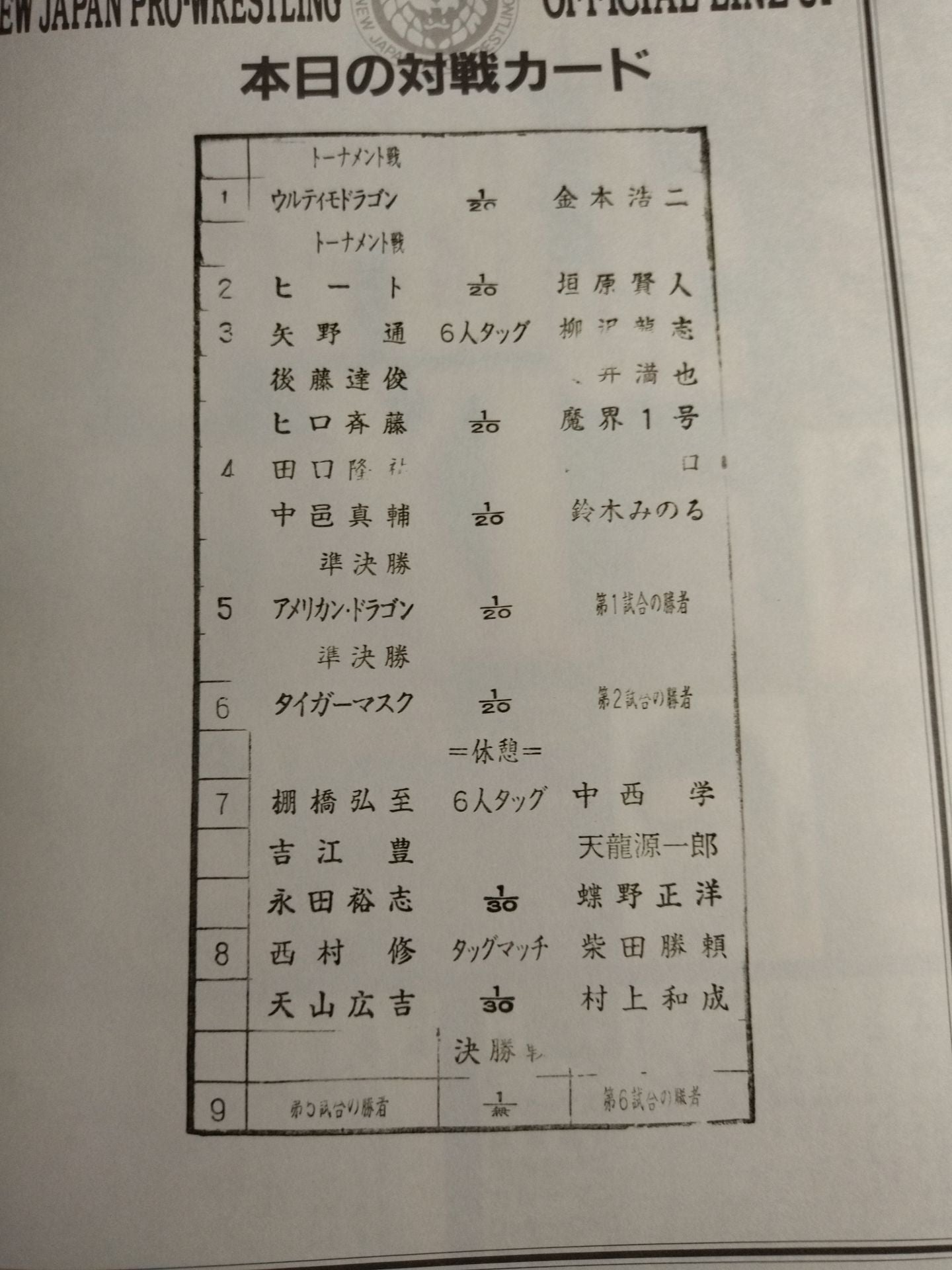 2004 Hidekazu Tanaka (now Kero Tanaka) Linguana's Hand Signed Autograph ! Korakuen Hall (Final Round) / stamped with list of matches: [Best of Super Junior XI Final] Blank (Tiger Mask vs Koji Kanemoto ) / Hiroyoshi Tenzan & Osamu Nishimura vs Kazunari Murakami & Katsuyori Shibata BEST OF THE SUPER Jr XI Finals