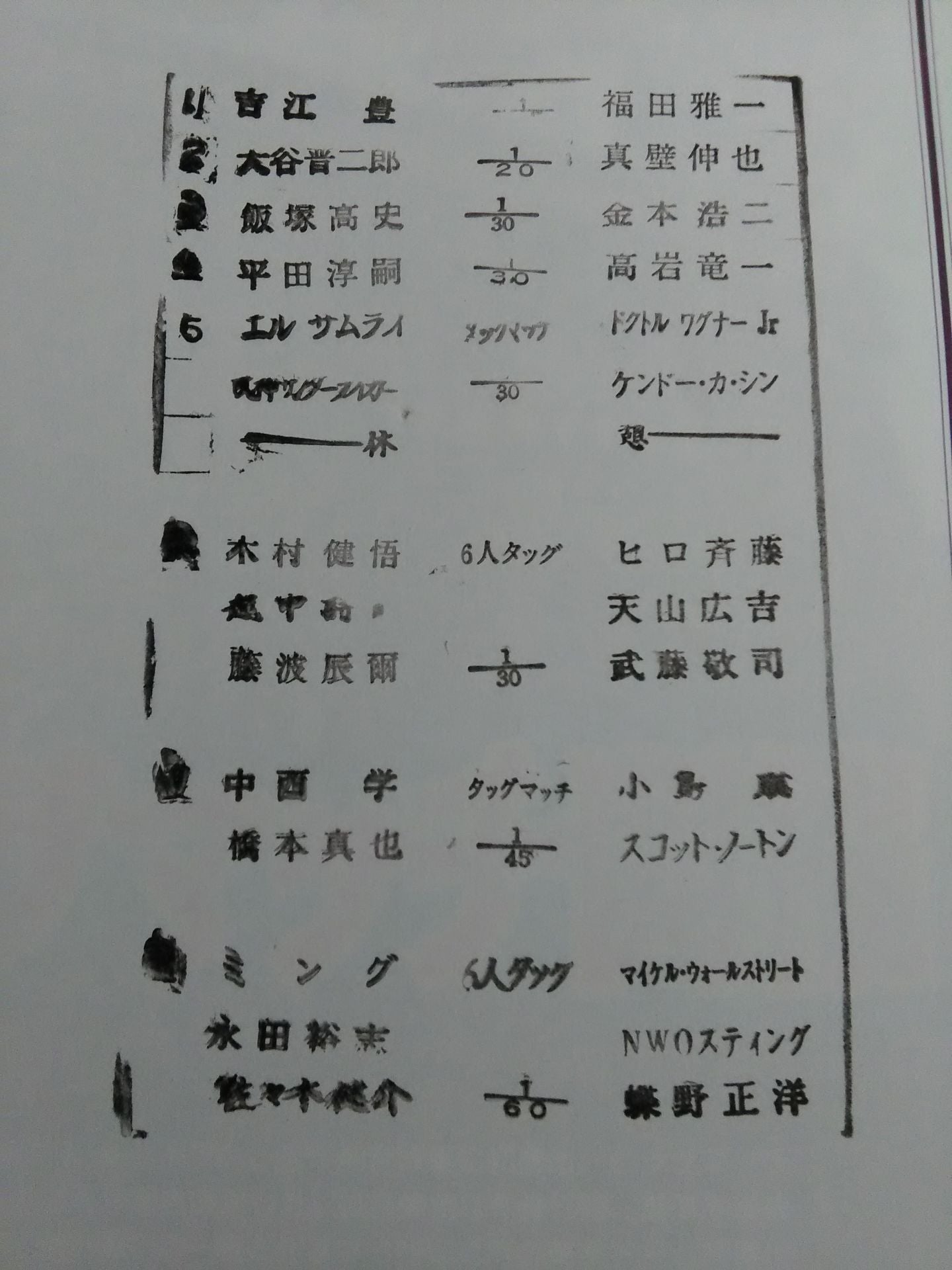 1999 Venue: Hachinohe City Gymnasium, Aomori / stamped with list of matches : Kensuke Sasaki & Yuji Nagata vs Ming vsMasahiro Chono & NWO Sting & Michael Wall Street Summer Struggle 99 / Cover: Shinya Hashimoto