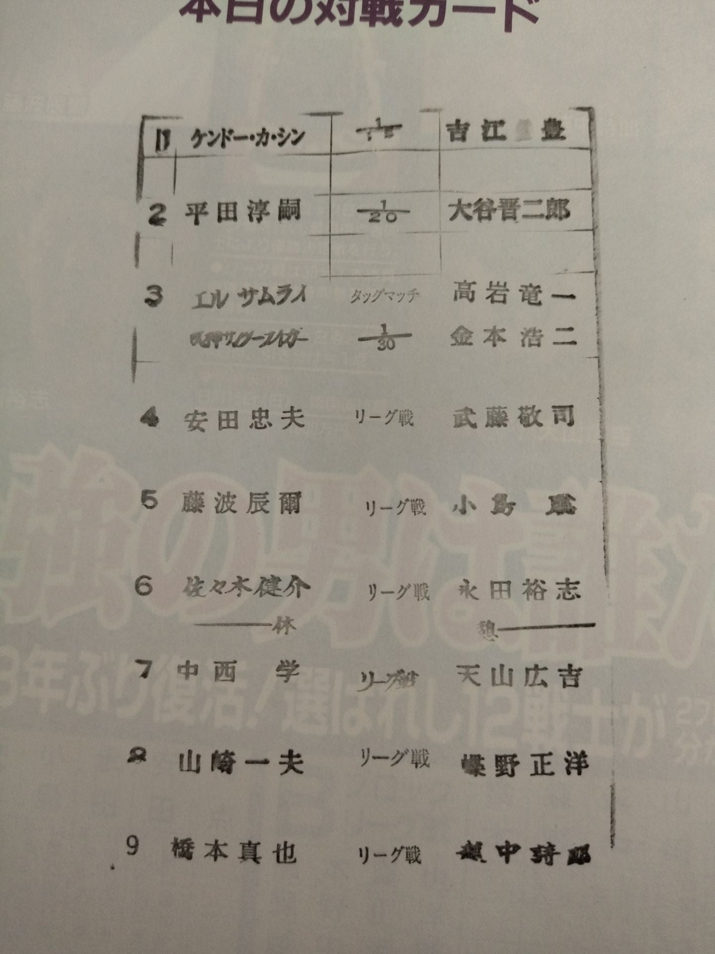 1999 Venue: Ryogoku / stamped with list of matches : [Official match] Shinya Hashimoto vs Shiro Koshinaka / [Official] Kazuo Yamazaki vs Masahiro Chono G1 CLIMAX 1999